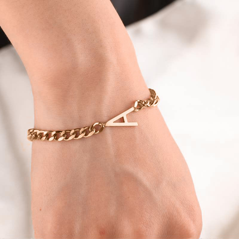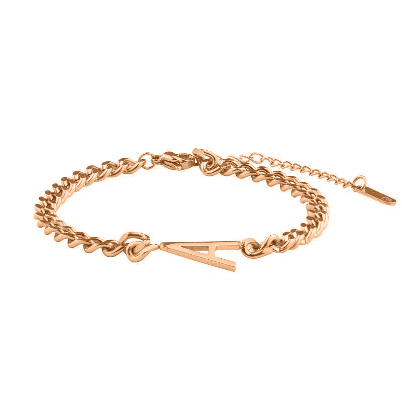 This initial bracelet makes a stylish personalized statement with its elegant curb chain. Crafted in sterling silver, with option for yellow gold plate or white gold plate, rose gold plate, this bracelet is the perfect way to add a unique touch to your look.