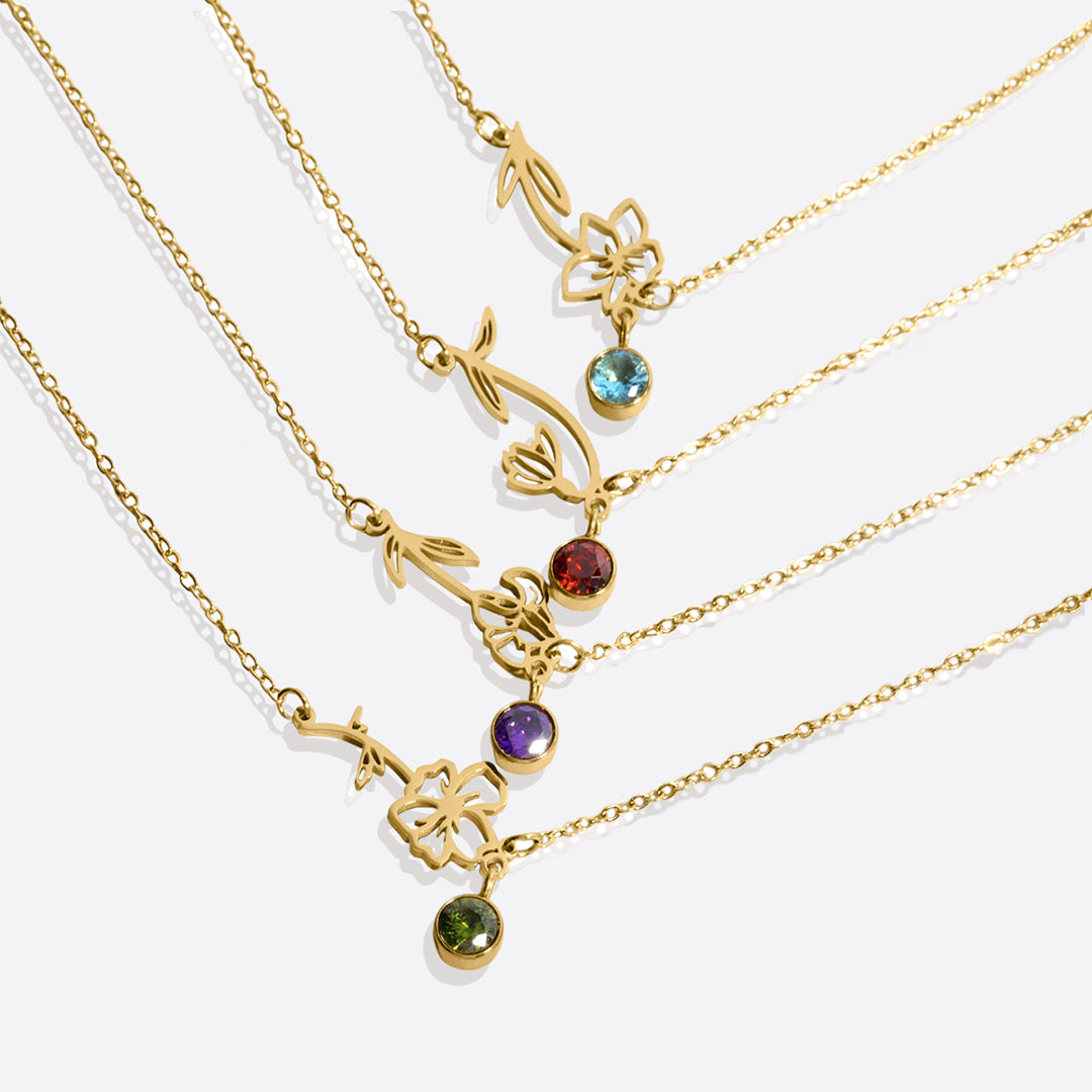 Delicate and personalized, this Dainty Birth Flower Bracelet features your chosen birth flower paired with a matching birthstone charm.