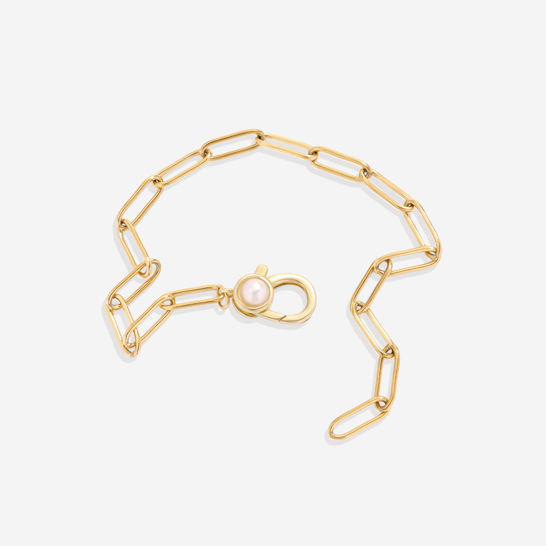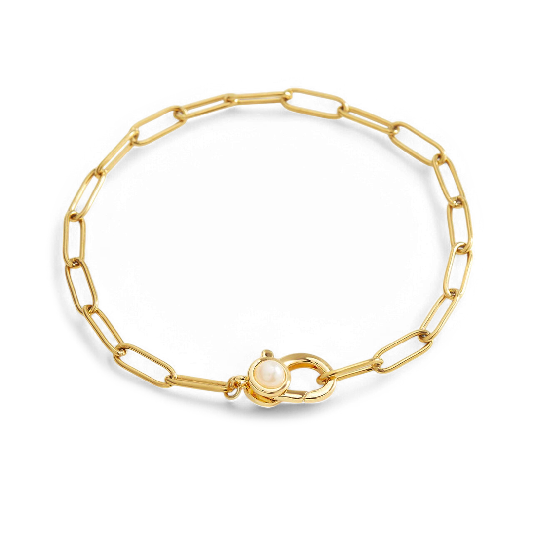 The Paperclip Bracelet with Pearl Accent combines sleek links with a touch of elegance, making it perfect for elevating any outfit.