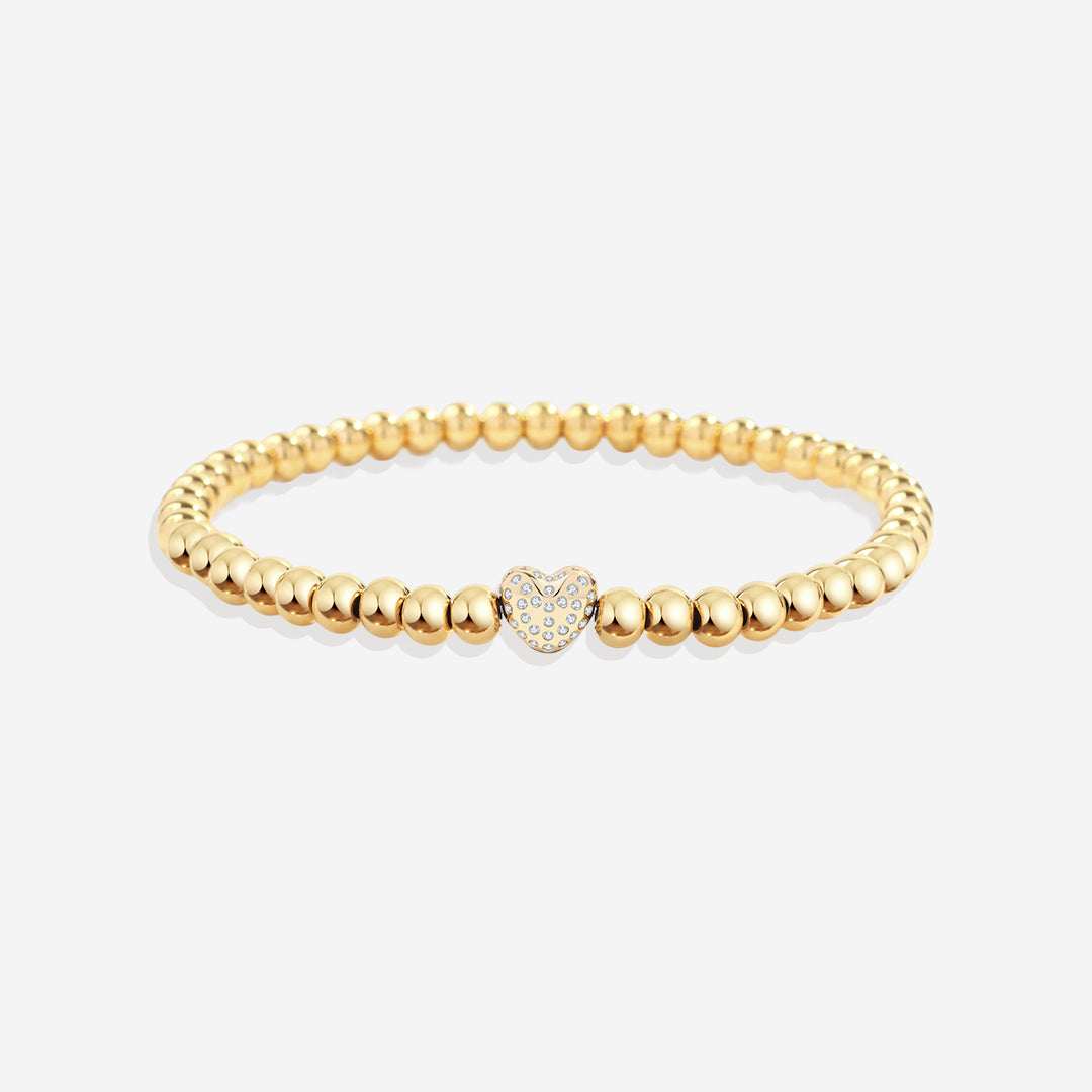 Pave Heart Beaded Bracelet beautifully combines elegance with a touch of whimsy. This charming bracelet features a series of delicate beads complemented by a sparkling pave heart charm, adding a lovely focal point to the design.