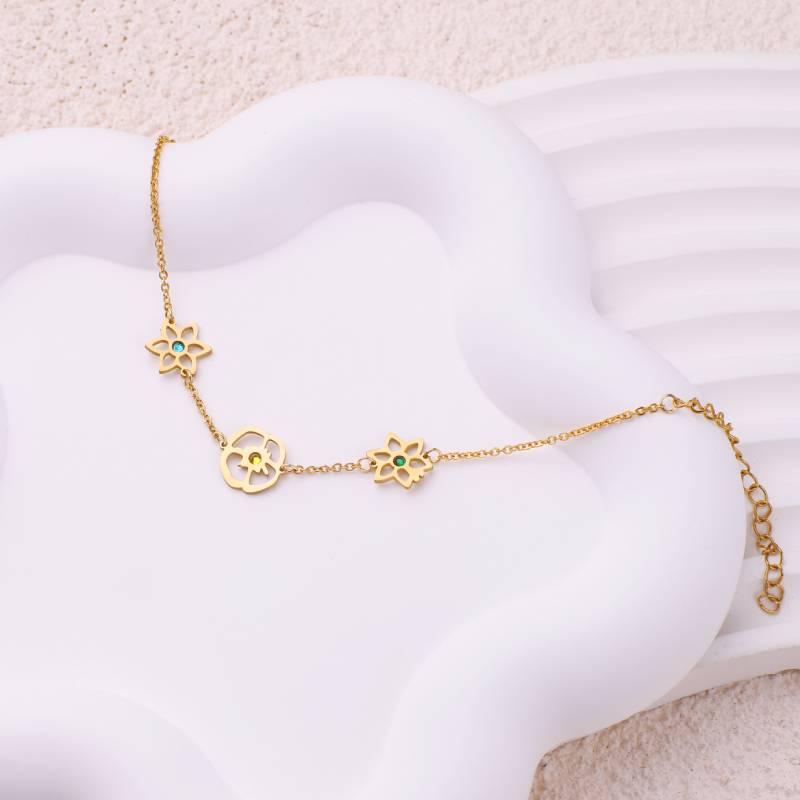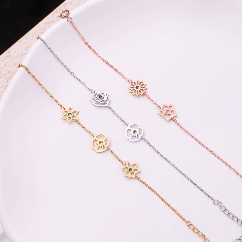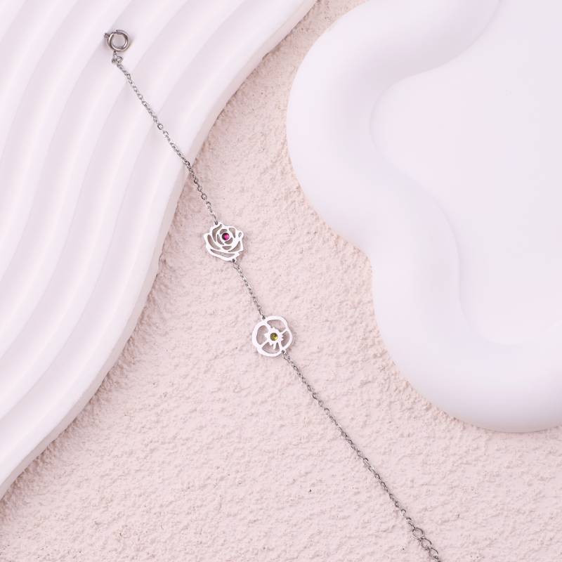 Celebrate your unique essence with this Personalized Birth Flower Charm Bracelet. Customizable and meaningful, it is a perfect way to wear a piece of personal symbolism daily or to give as a thoughtful gift that celebrates an individual's special day.