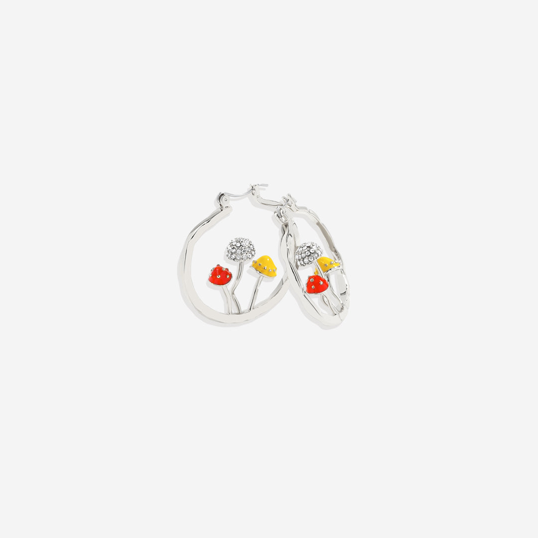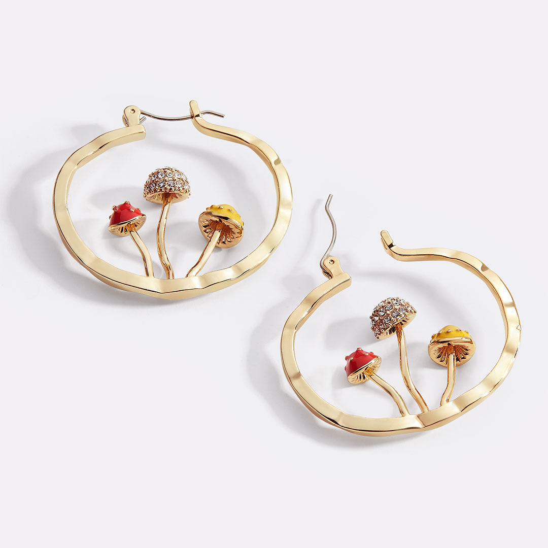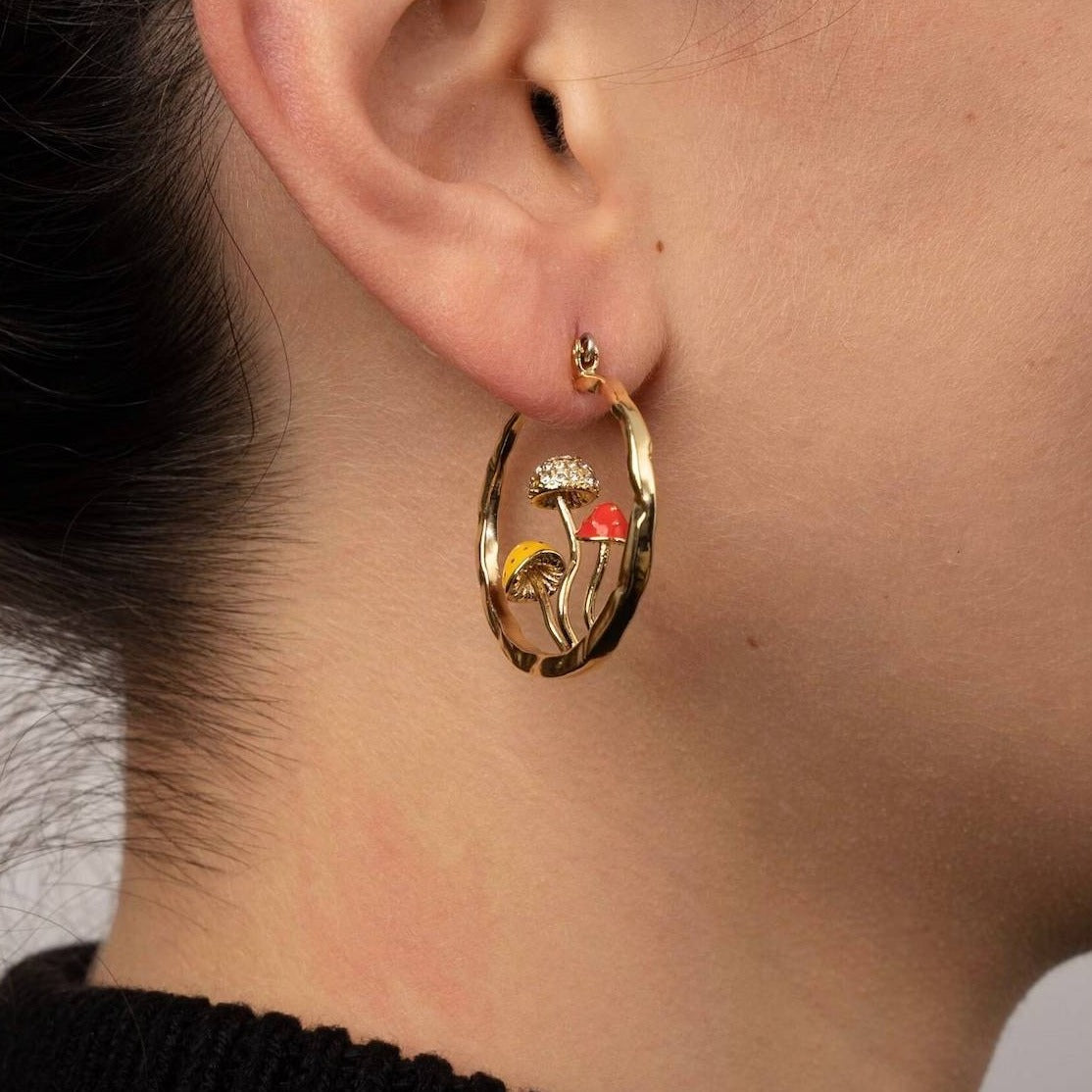 Make a statement with these Boho Mushroom Earrings. Featuring a unique mushroom design, these hoop earrings are perfect for any boho chic look. The intricate detailing and delicate nature of the earrings add a touch of charm to any outfit. Crafted in sterling silver, with option for yellow gold plate or white gold plate, rose gold plate.