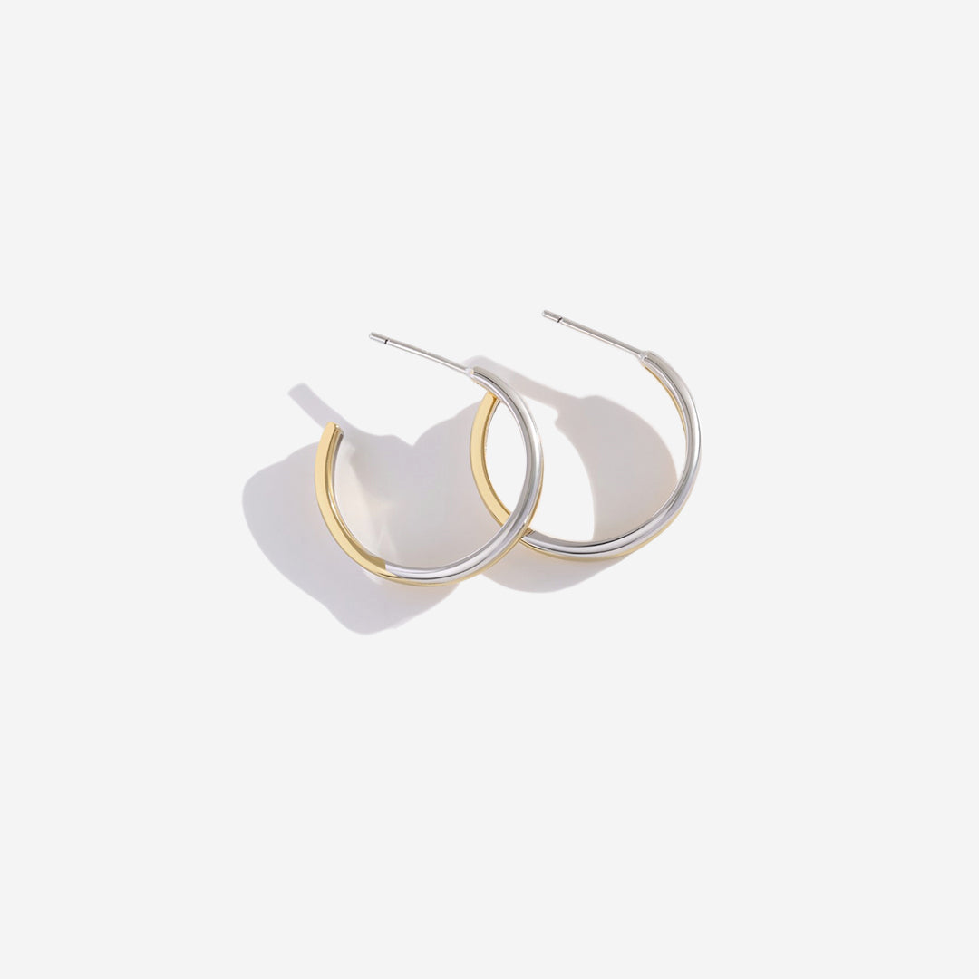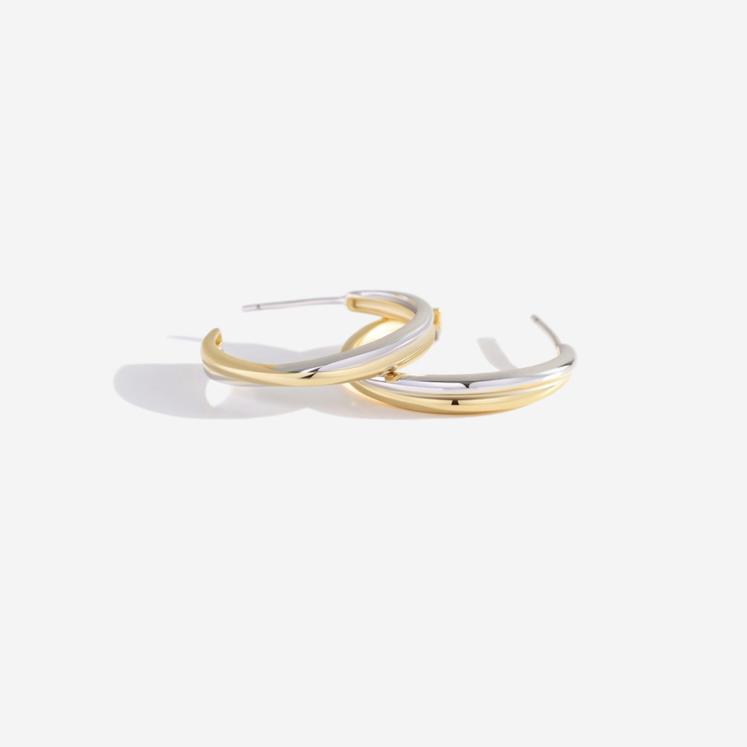 A perfect balance of elegance and edge, these mixed metal hoops bring effortless versatility. Designed for those who love to mix metals, they pair seamlessly with gold or silver jewelry, making every outfit feel effortlessly put together.