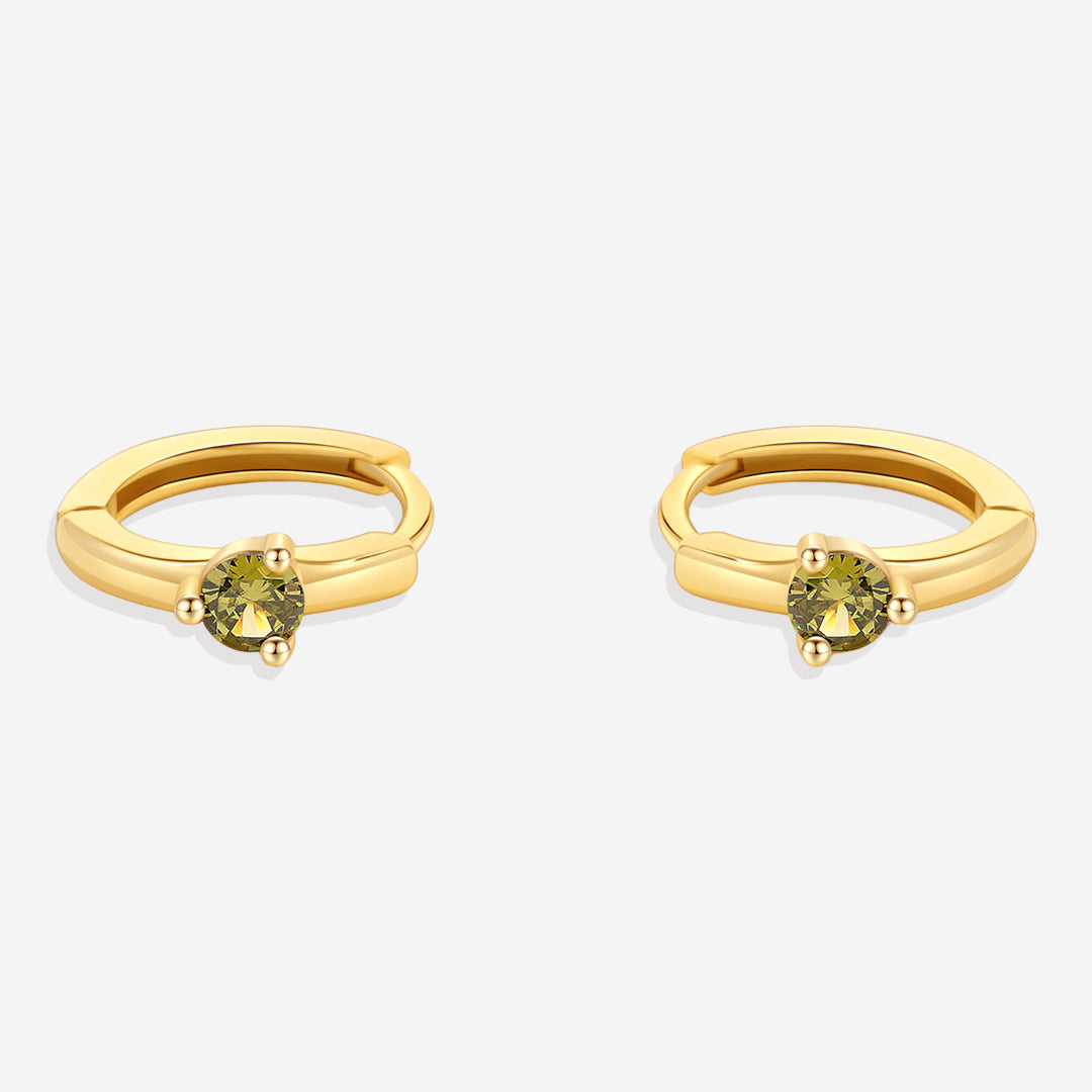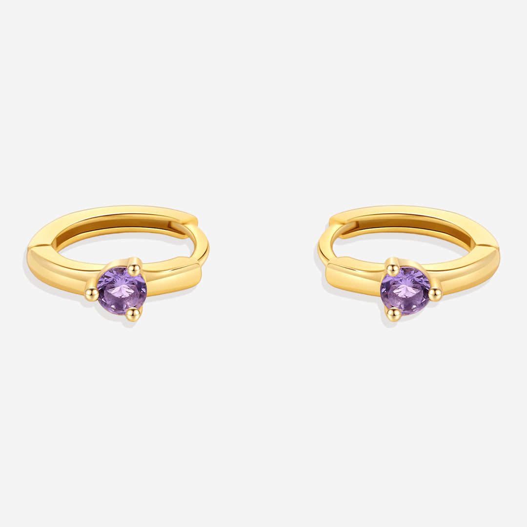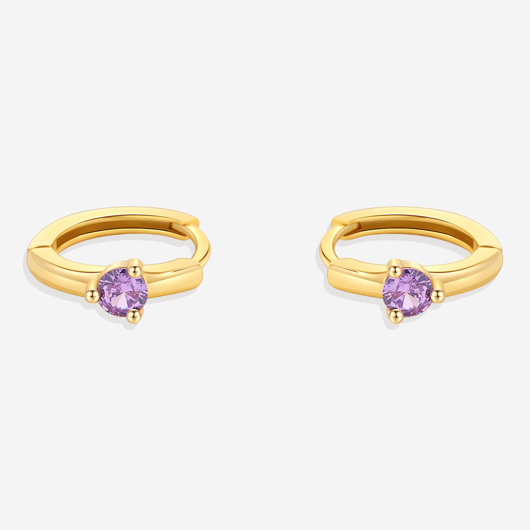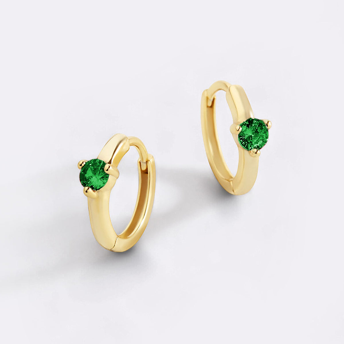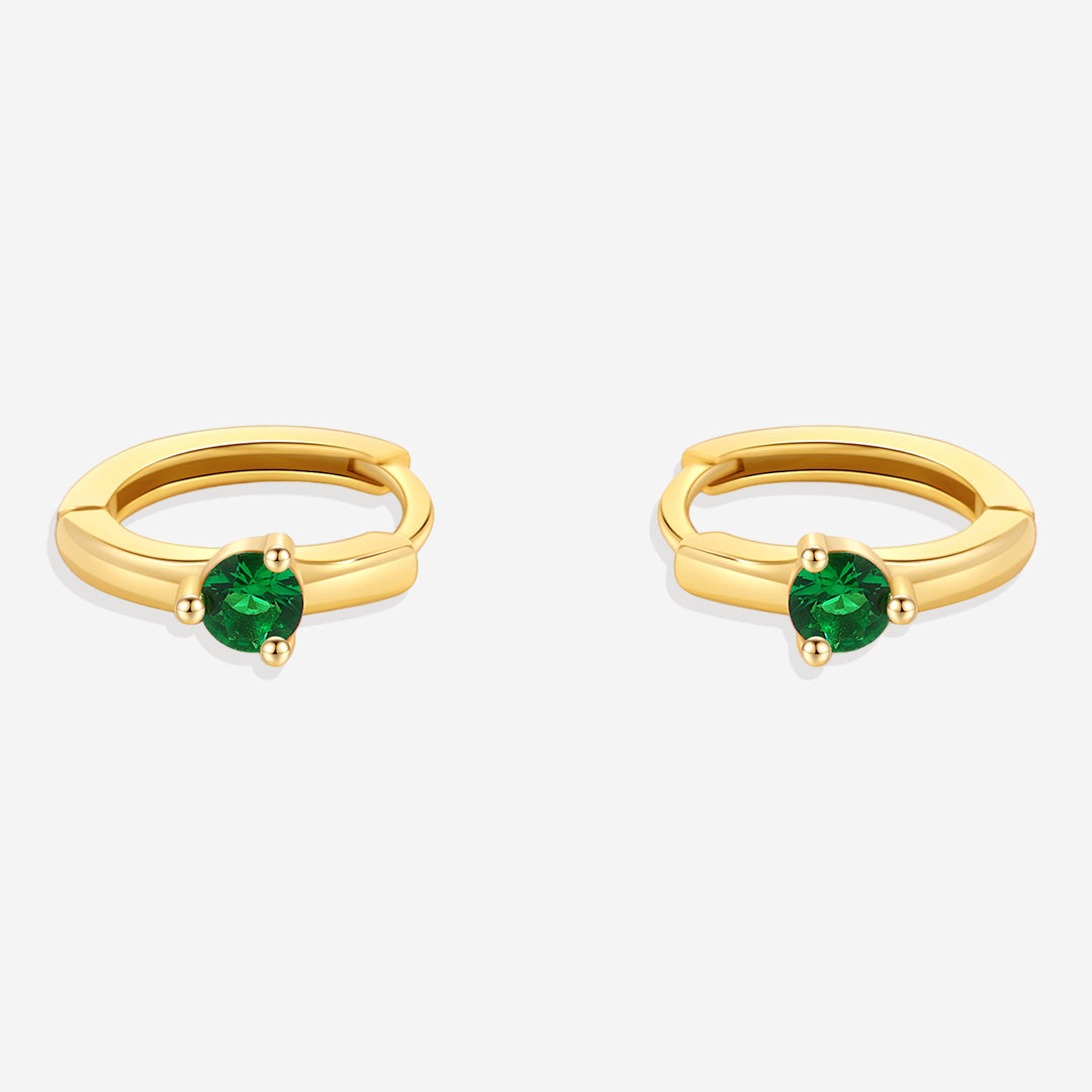 Single Stone Birthstone Huggie Hoops are a refined and personal accessory. Each hoop earring features a single, sparkling birthstone, adding a vibrant touch of color and individuality.