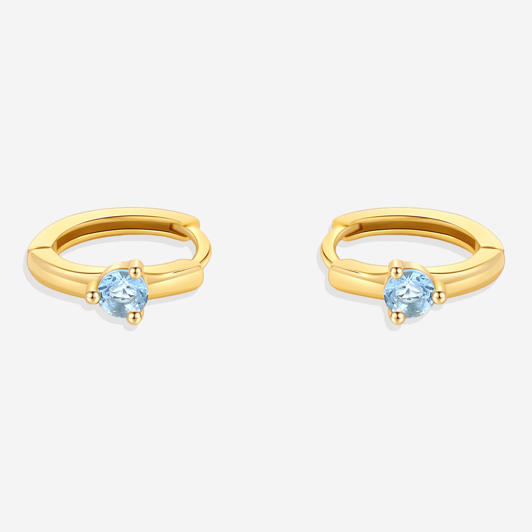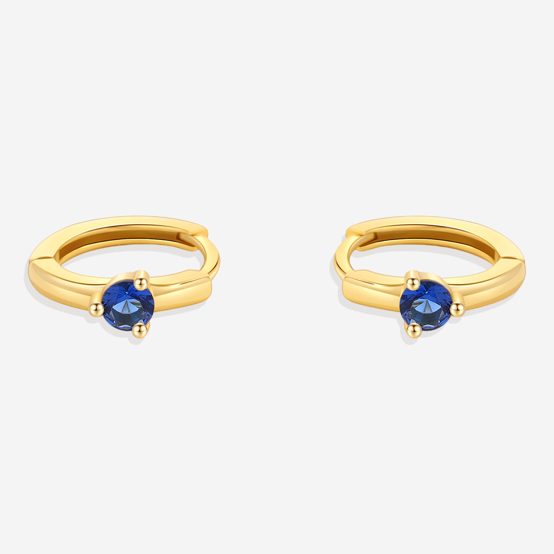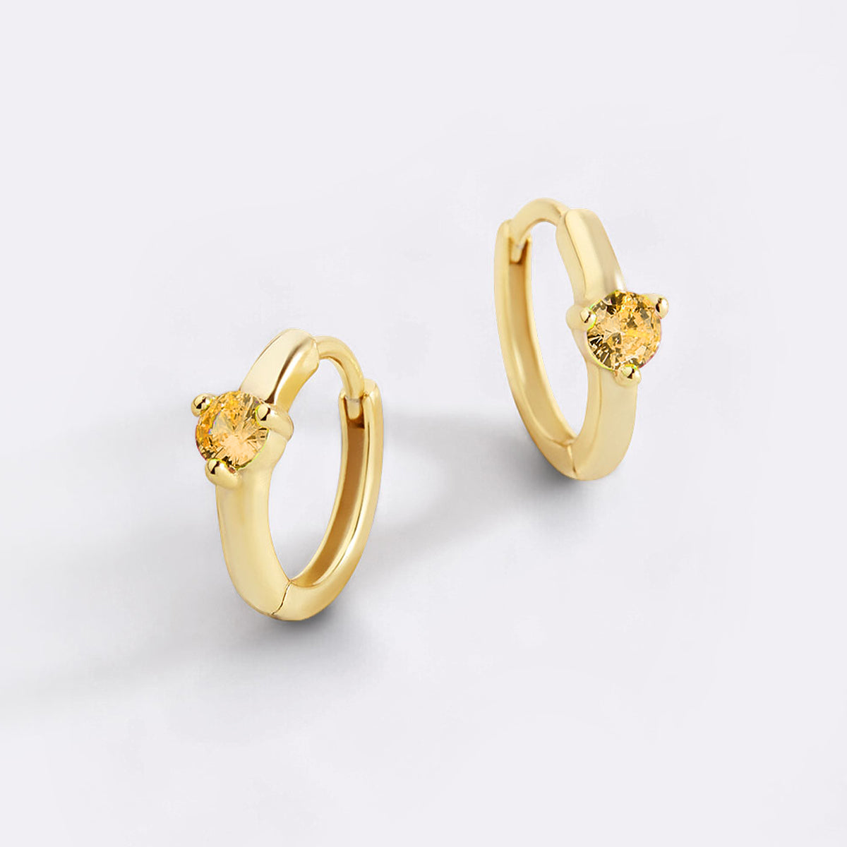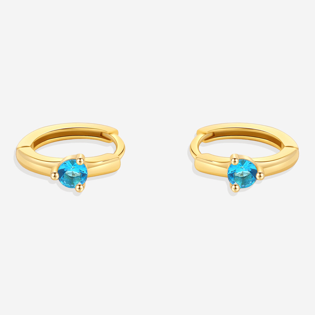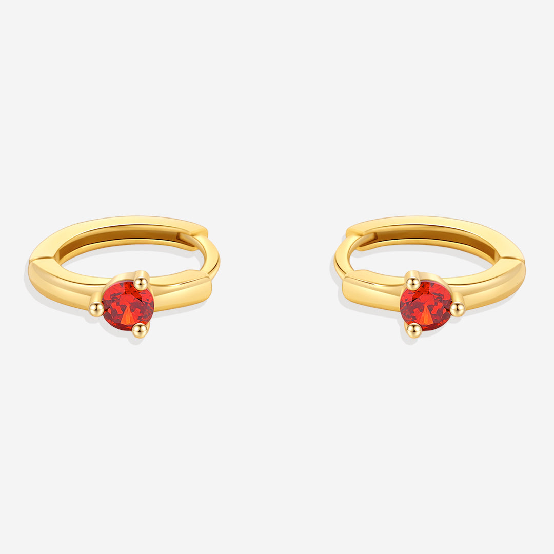 Single Stone Birthstone Huggie Hoops are a refined and personal accessory. Each hoop earring features a single, sparkling birthstone, adding a vibrant touch of color and individuality.