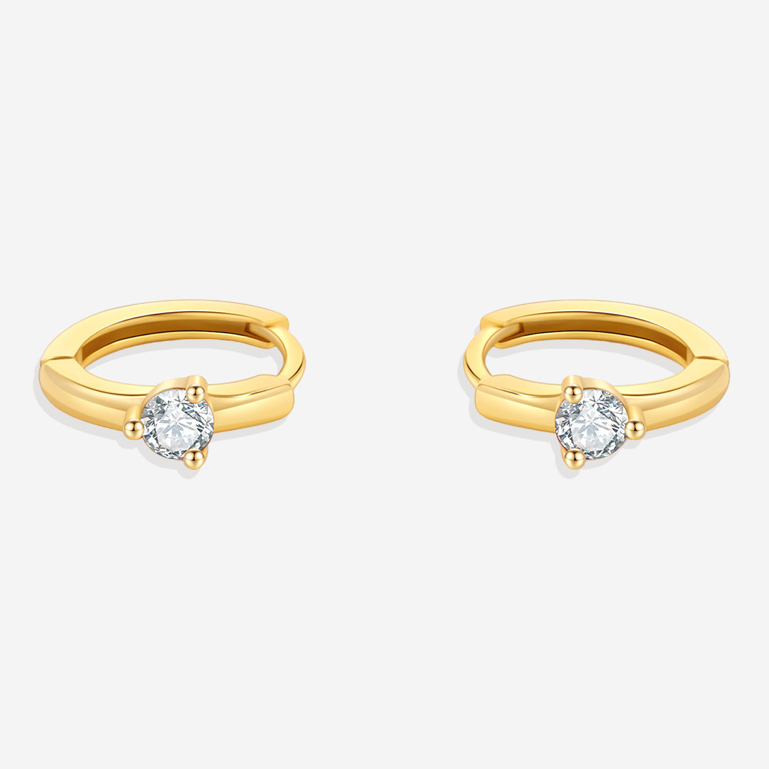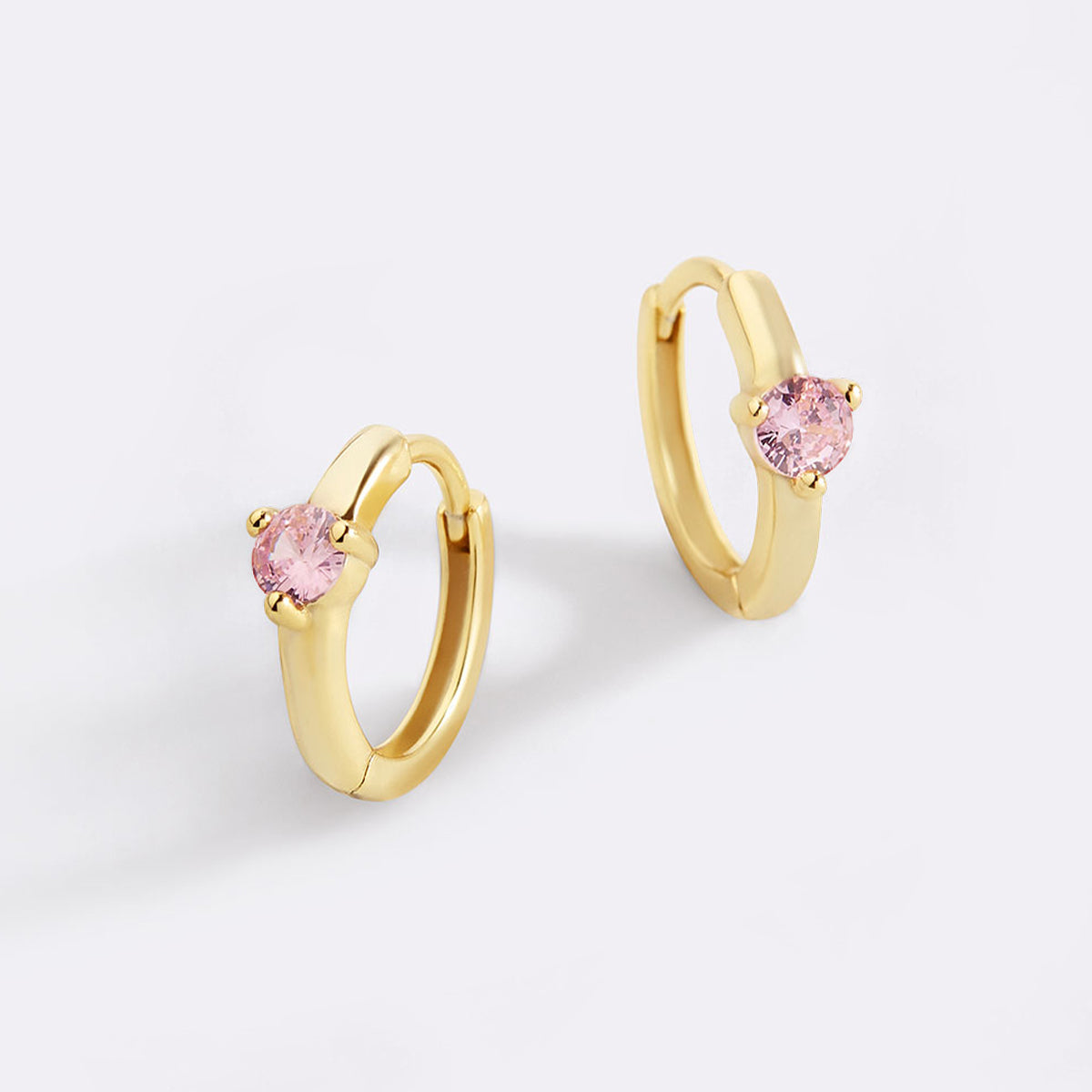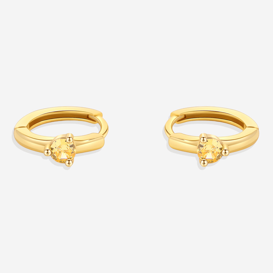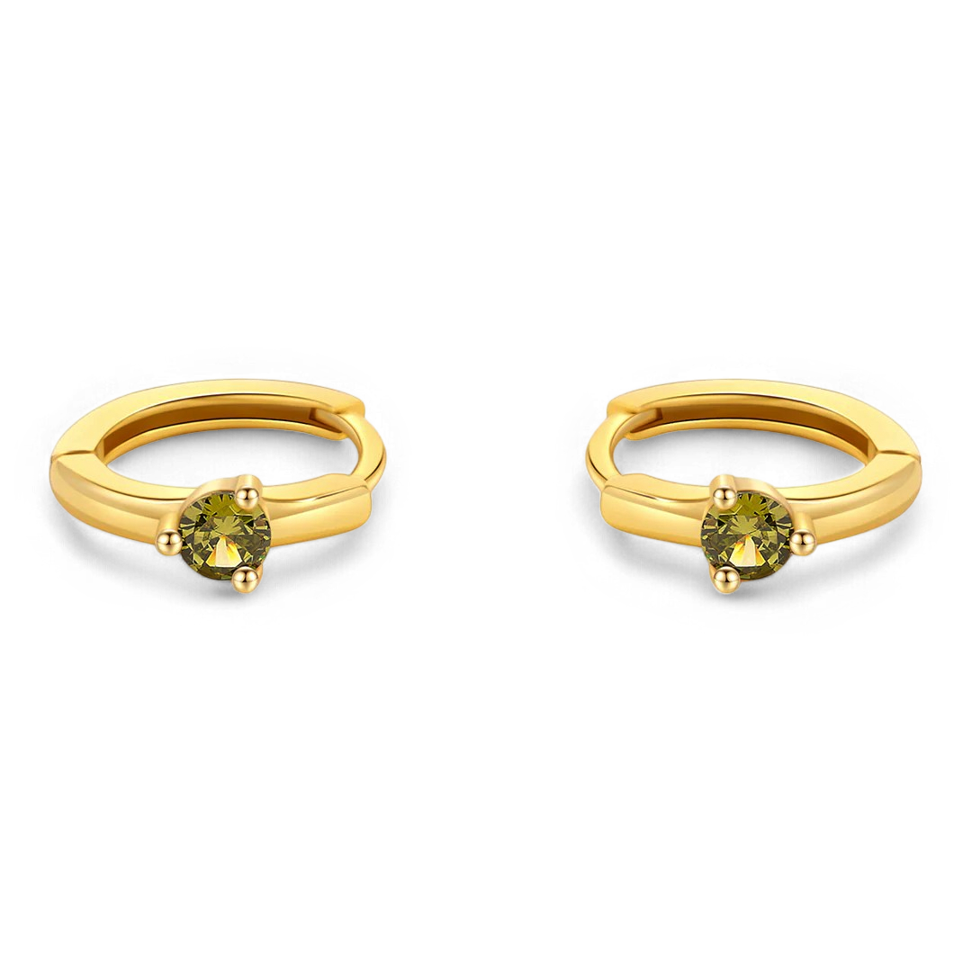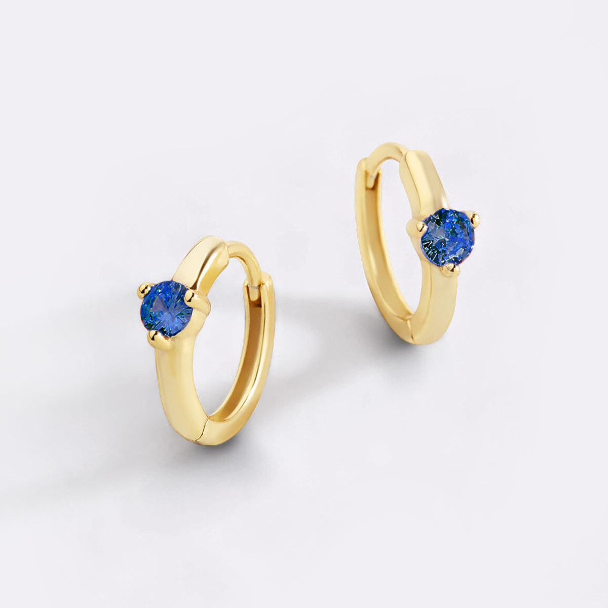 Single Stone Birthstone Huggie Hoops are a refined and personal accessory. Each hoop earring features a single, sparkling birthstone, adding a vibrant touch of color and individuality.