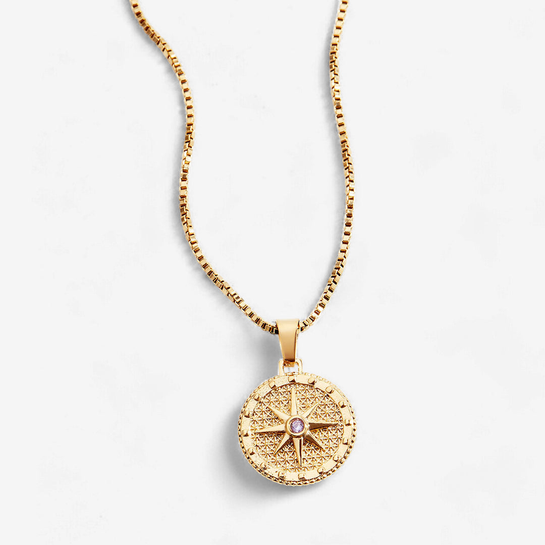 Birthstone Compass Pendant Necklace combines personal significance with classic design. The necklace features a beautifully detailed compass pendant, accented with a vibrant birthstone that represents a special date or loved one.