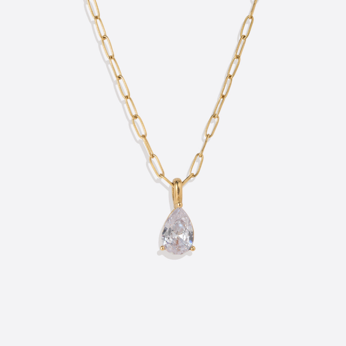 Birthstone Pendant Necklace with Dainty Paperclip Chain