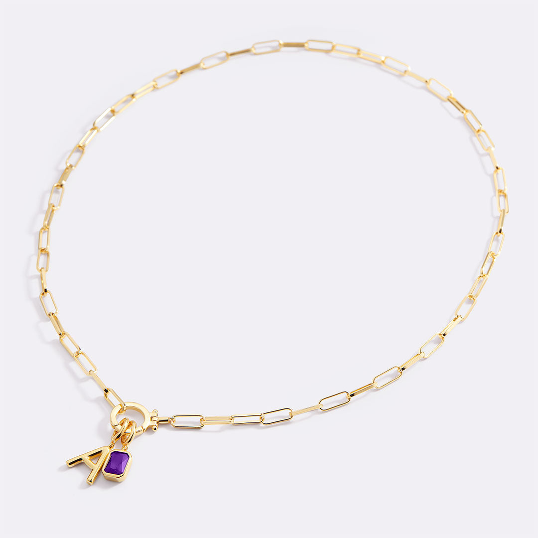 Mint Paperclip Necklace with Initial & Birthstone Charm