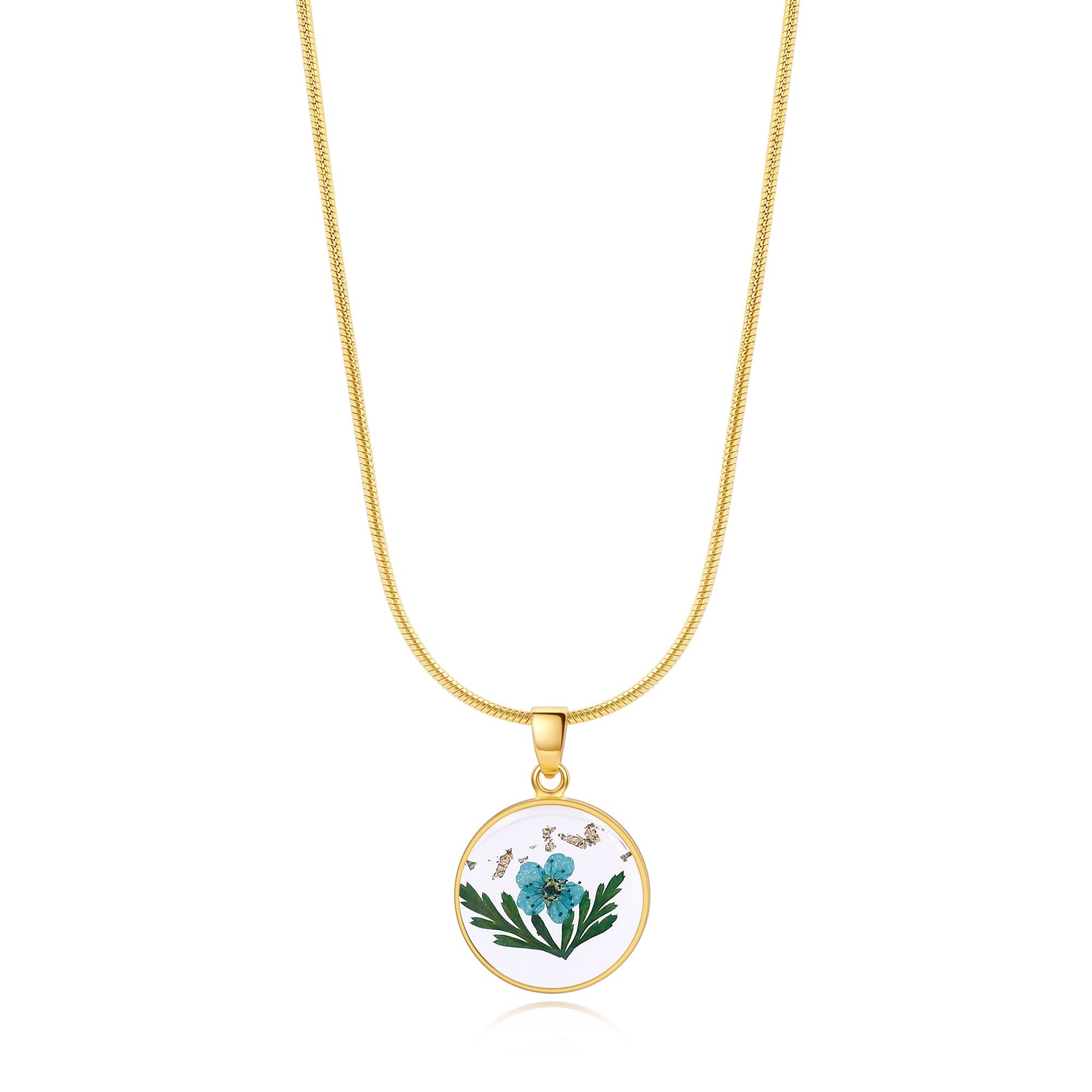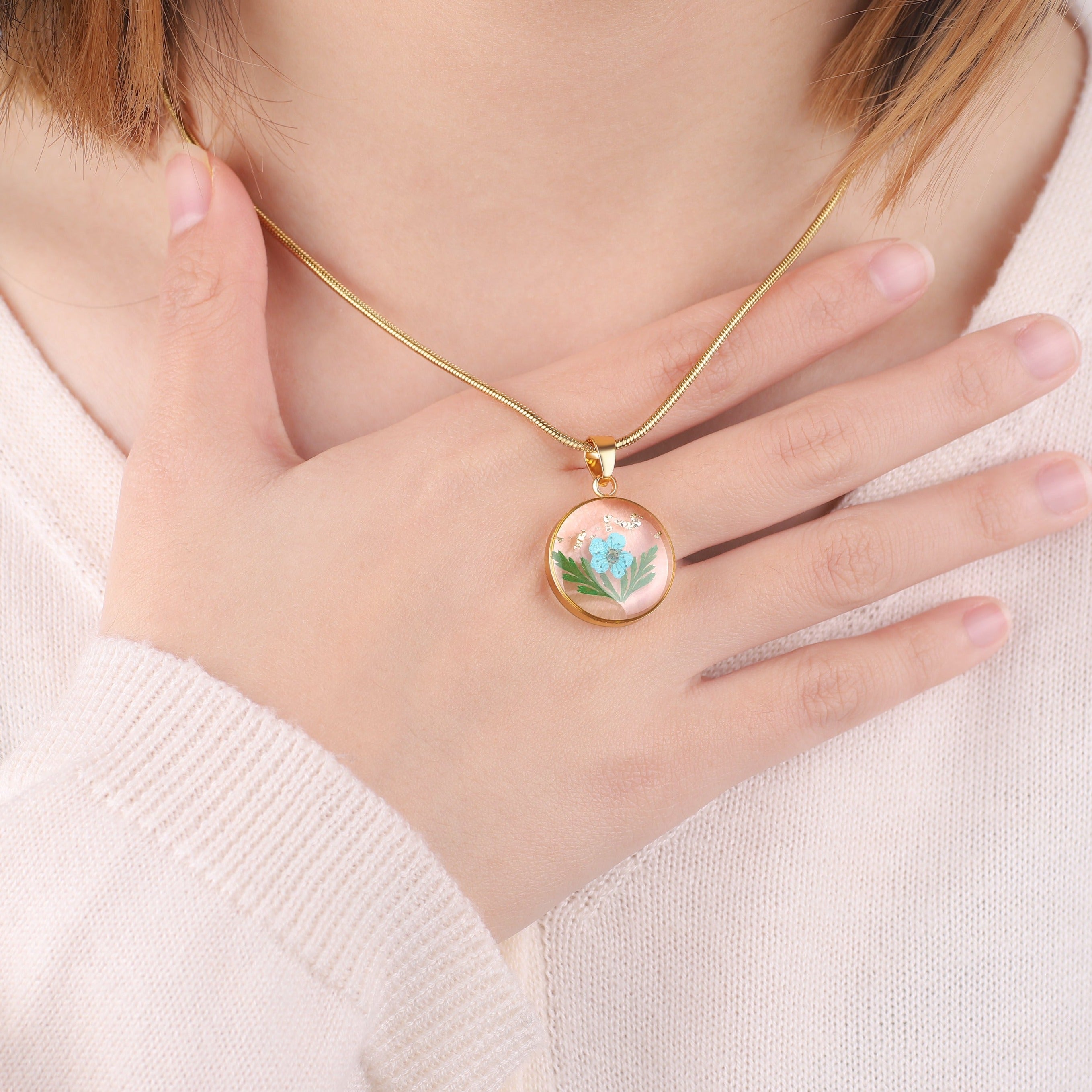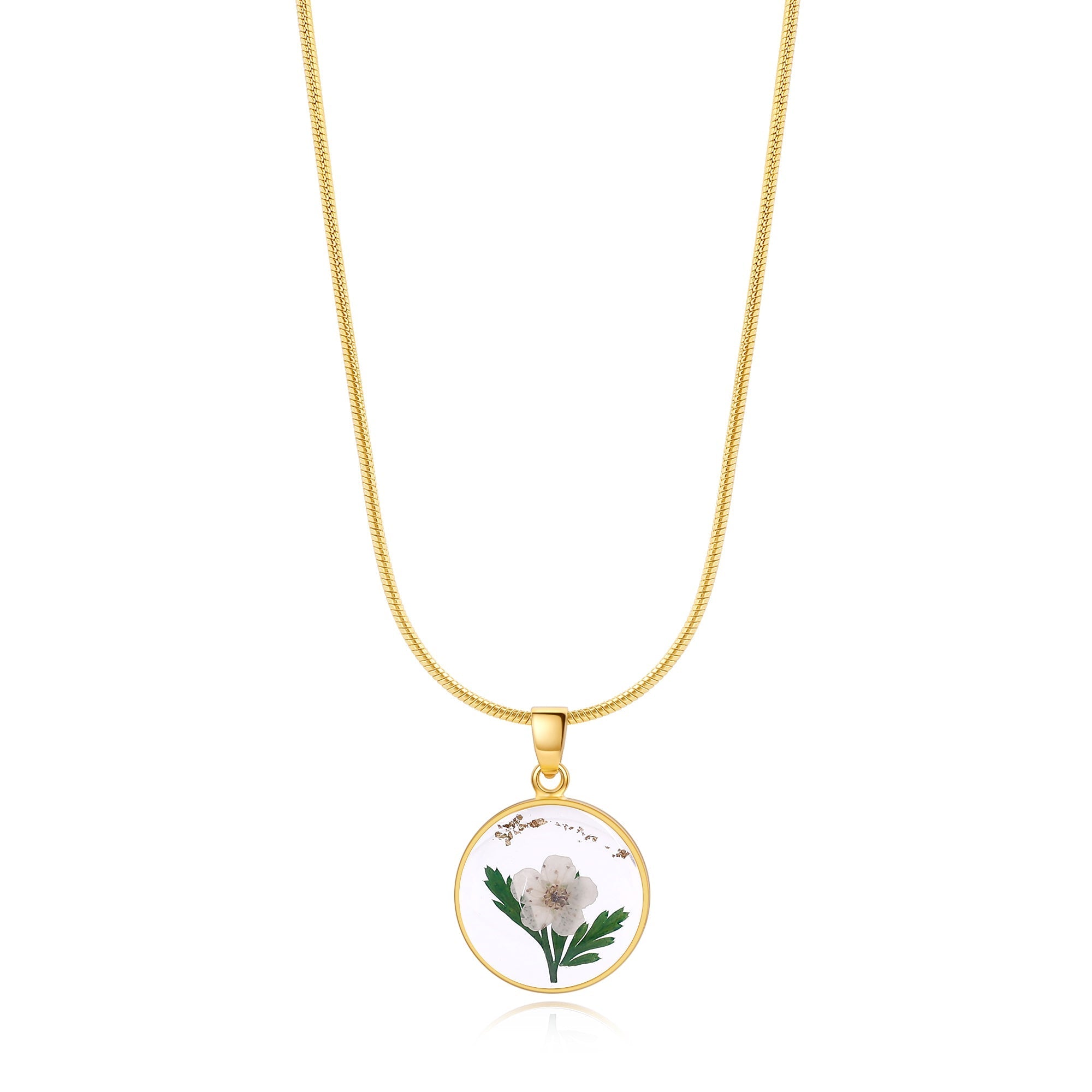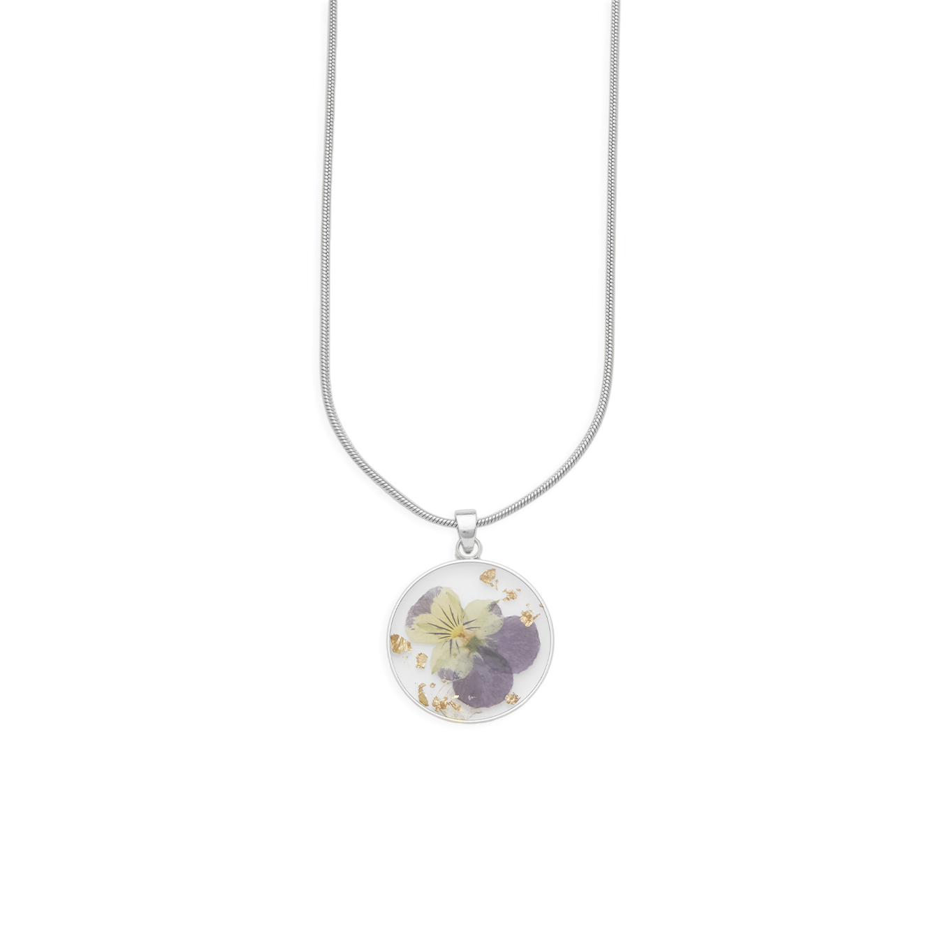 A gorgeous, unique piece to add to your stack, the Pressed Birth Flower Necklace features a resin pendant containing a real flower on a sleek snake chain.