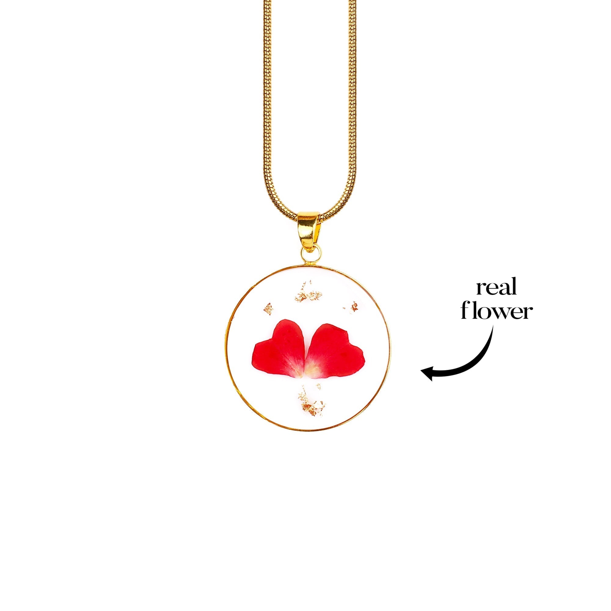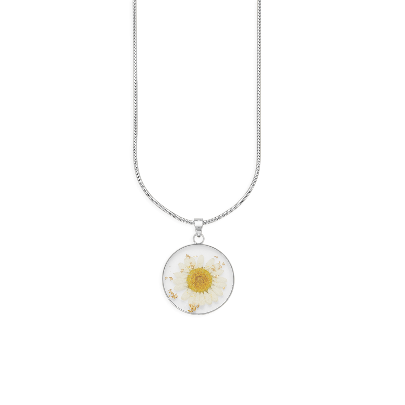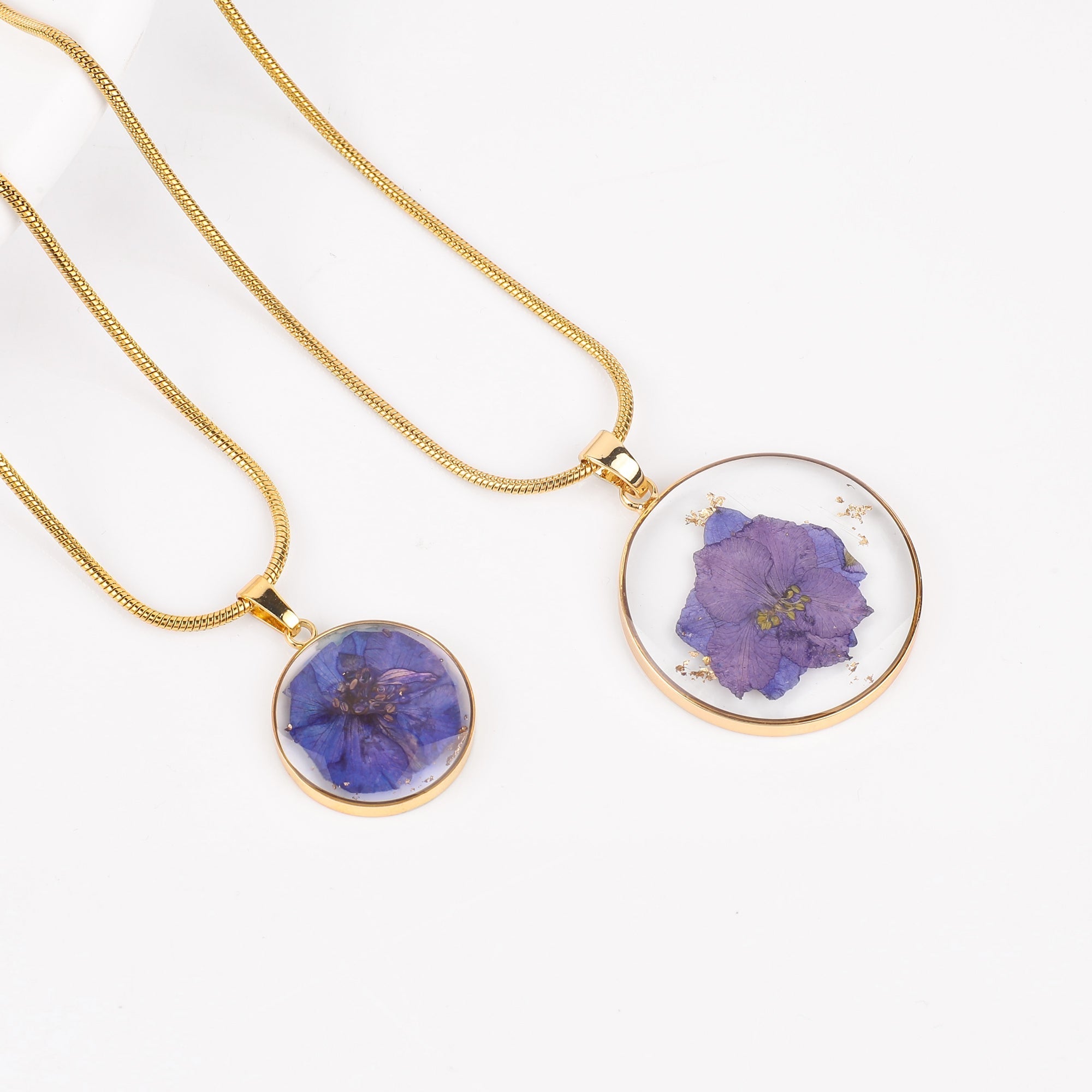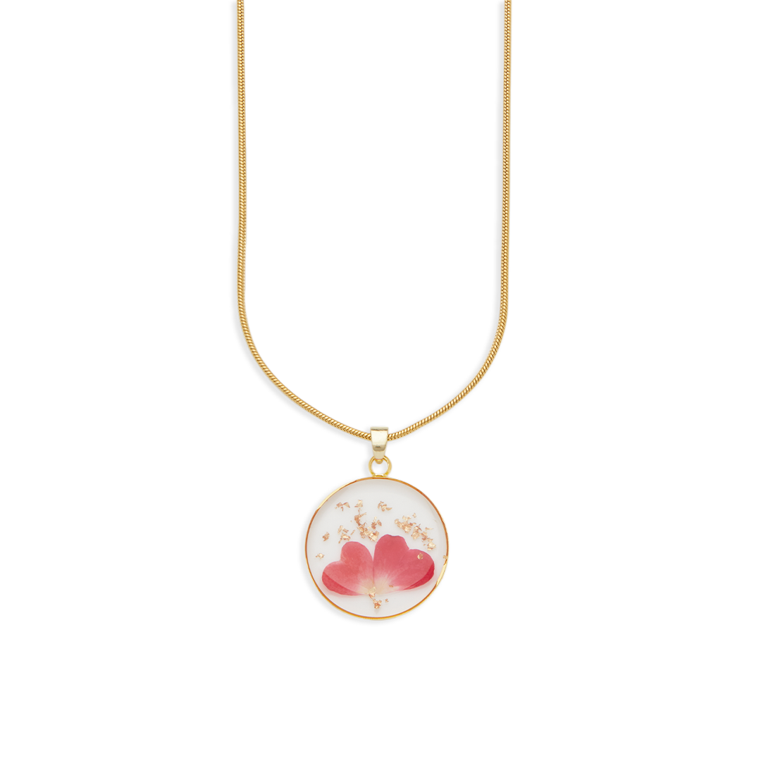 A gorgeous, unique piece to add to your stack, the Pressed Birth Flower Necklace features a resin pendant containing a real flower on a sleek snake chain.