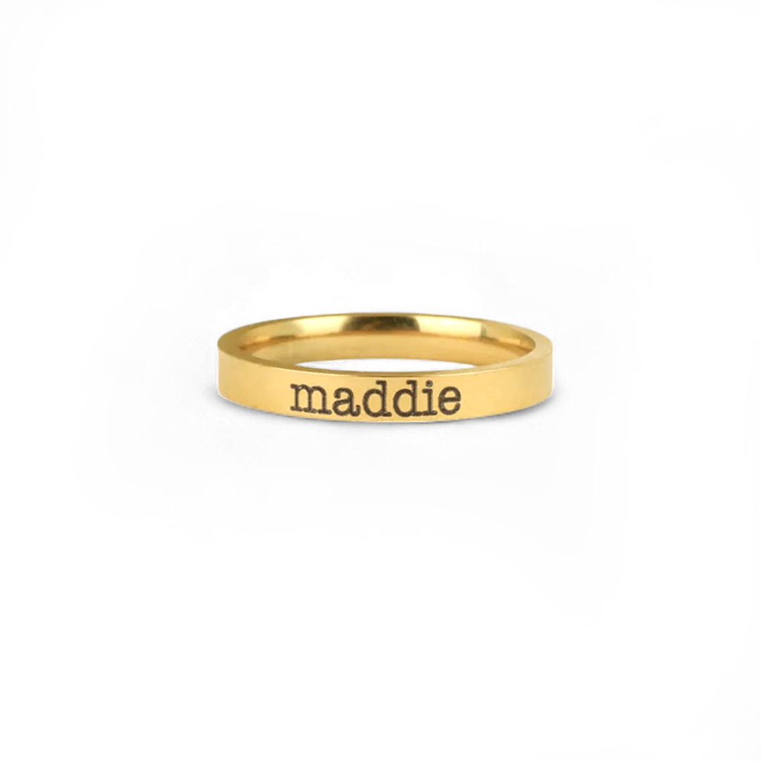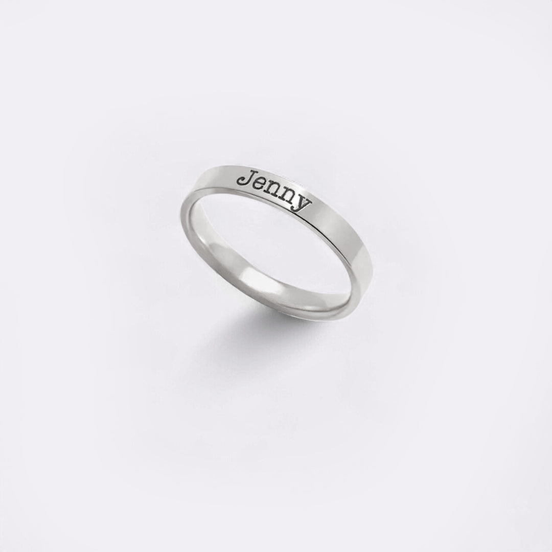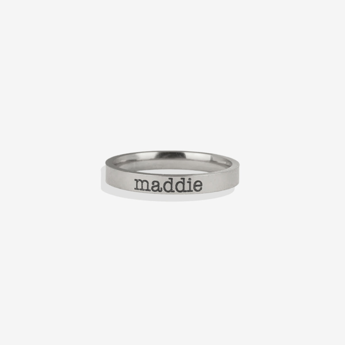 Crafted in sterling silver, with option for yellow gold plate or white gold plate, rose gold plate. This personalized ring features a band width of 3mm, making it a stylish yet subtle addition to any jewelry collection. Perfect for everyday wear or special occasions, this ring is designed for comfort and elegance.