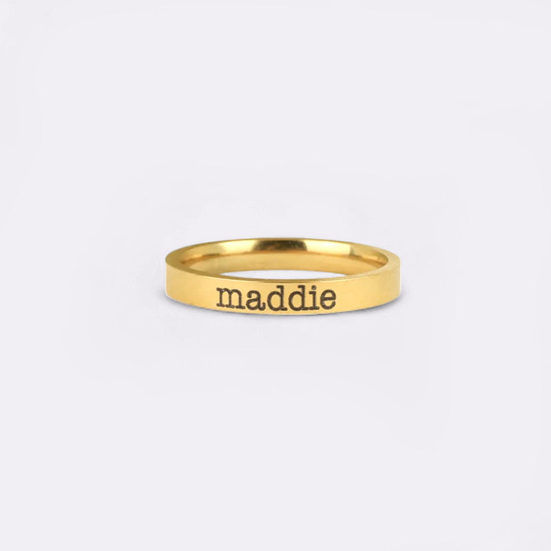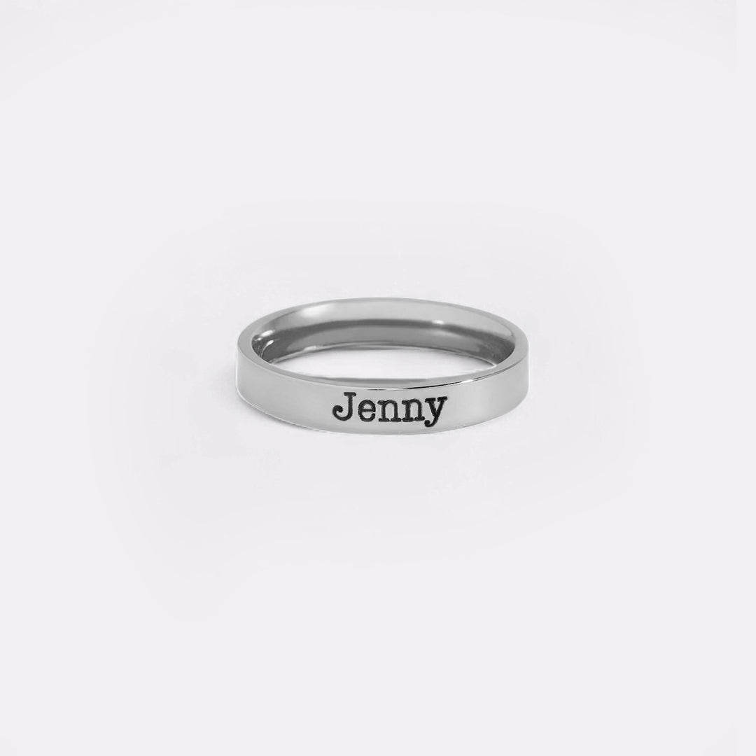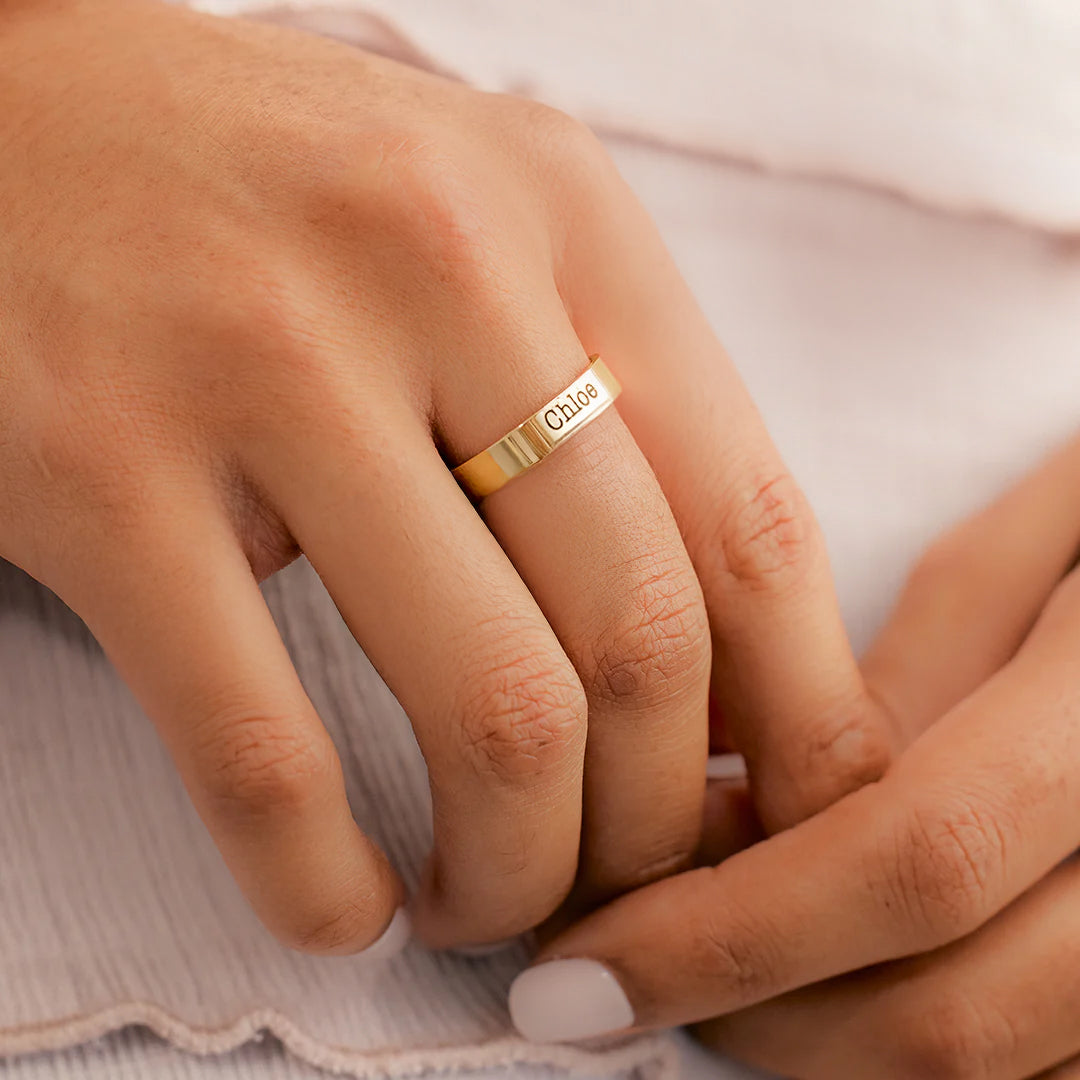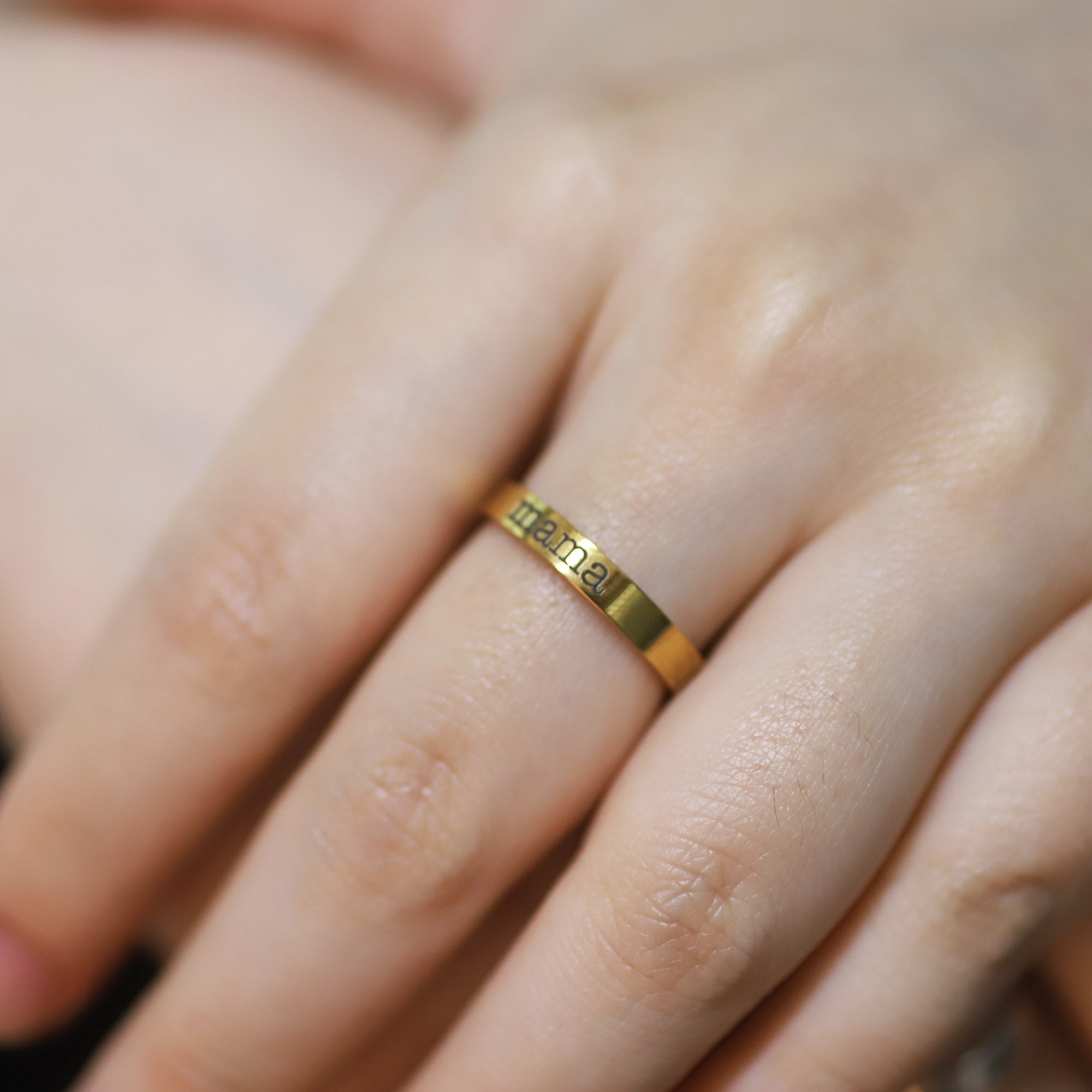 Crafted in sterling silver, with option for yellow gold plate or white gold plate, rose gold plate. This personalized ring features a band width of 3mm, making it a stylish yet subtle addition to any jewelry collection. Perfect for everyday wear or special occasions, this ring is designed for comfort and elegance.