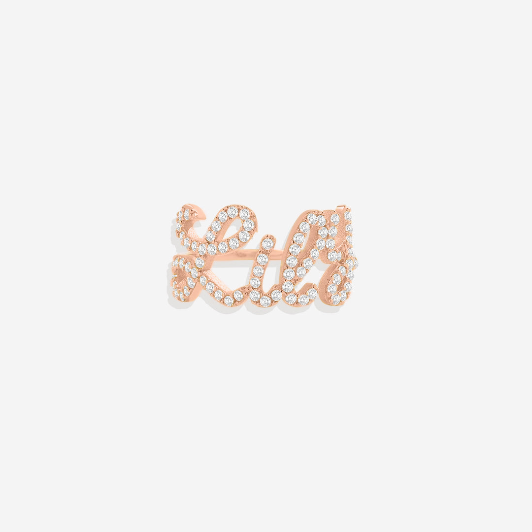 Shine bright with the Pave Name Ring—your name, your way, sparkling with elegance. This sleek, personalized design is bold yet timeless, making it perfect for every occasion. Crafted in sterling silver, with option for yellow gold plate or white gold plate, rose gold plate.