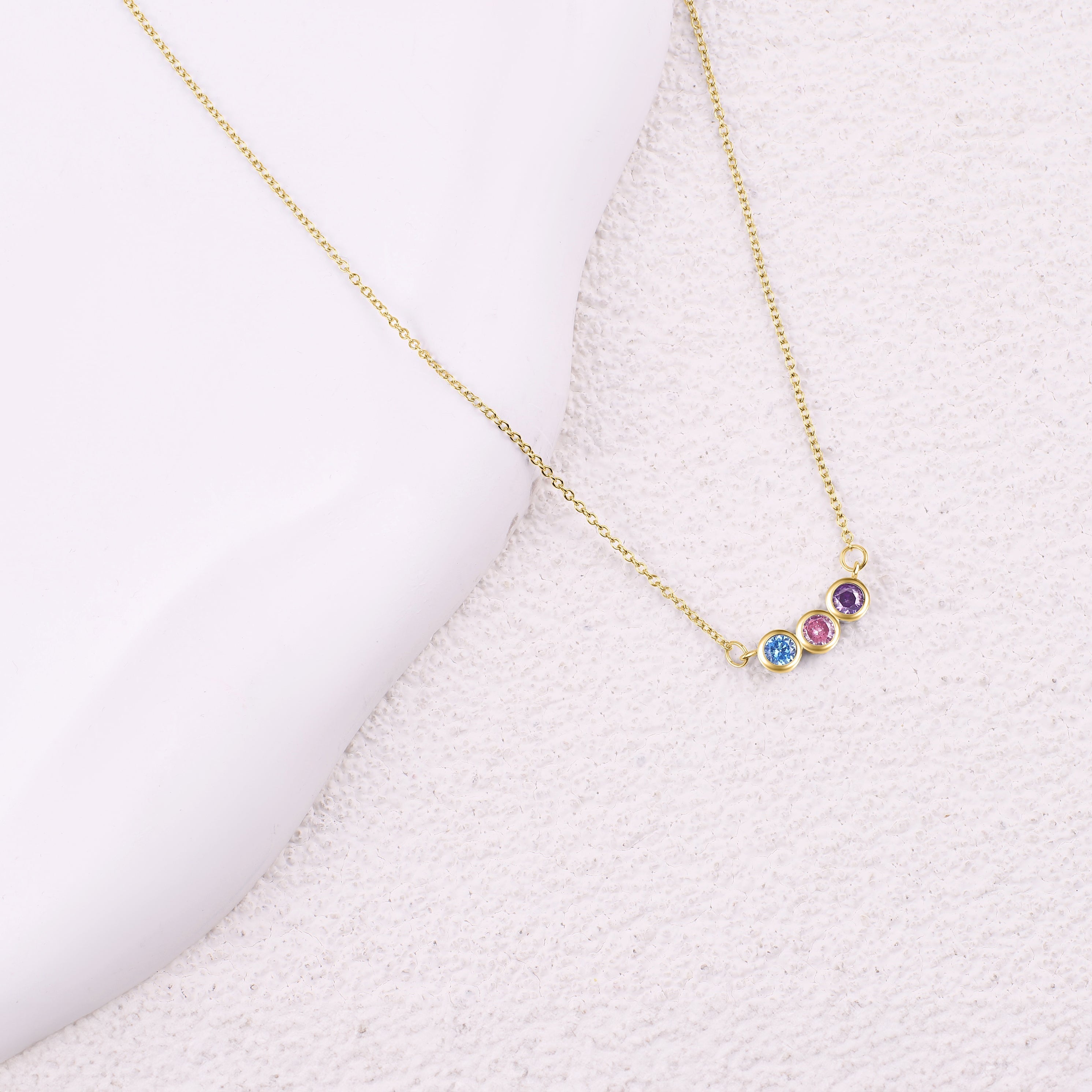 The Dainty Family Birthstones Necklace is a delicate and elegant way to carry your loved ones close to your heart. This refined piece features a series of small, sparkling birthstones, each representing a family member. Its subtle design makes it perfect for everyday wear or special occasions, offering a timeless symbol of family bonds. Ideal as a thoughtful gift or personal keepsake.
