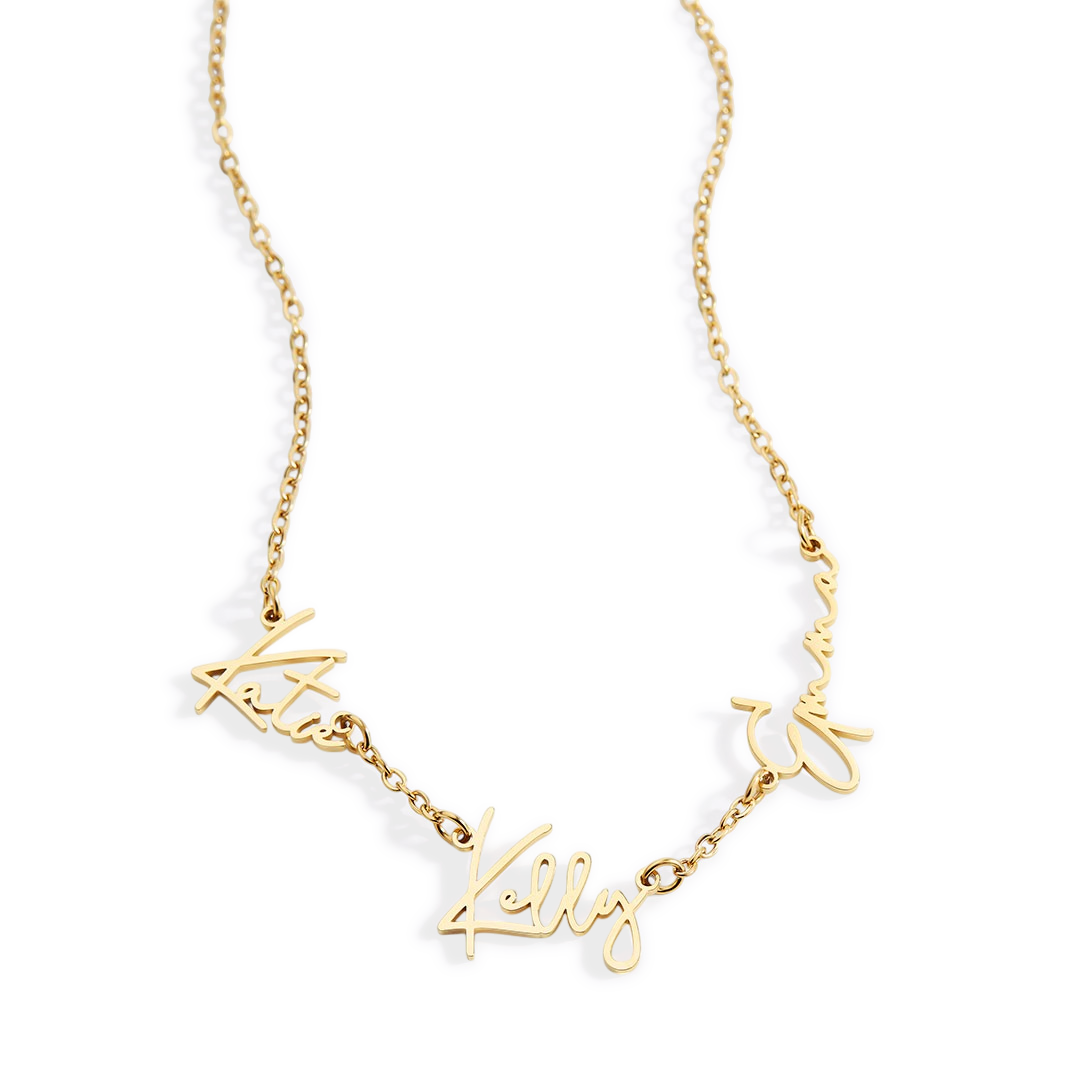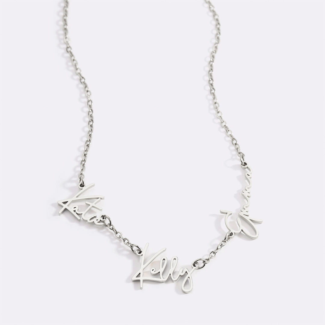 A beautiful necklace that will never go out of style. Choose your favorite names and personalize it as you please. Crafted in sterling silver, with option for yellow gold plate or white gold plate, rose gold plate. A perfect gift for your significant other, mother or best friend.