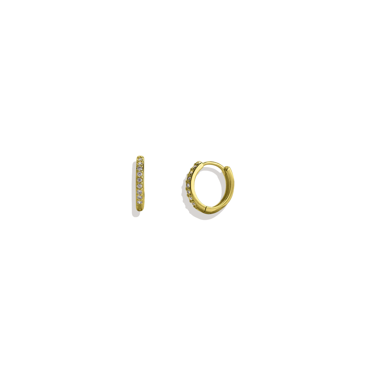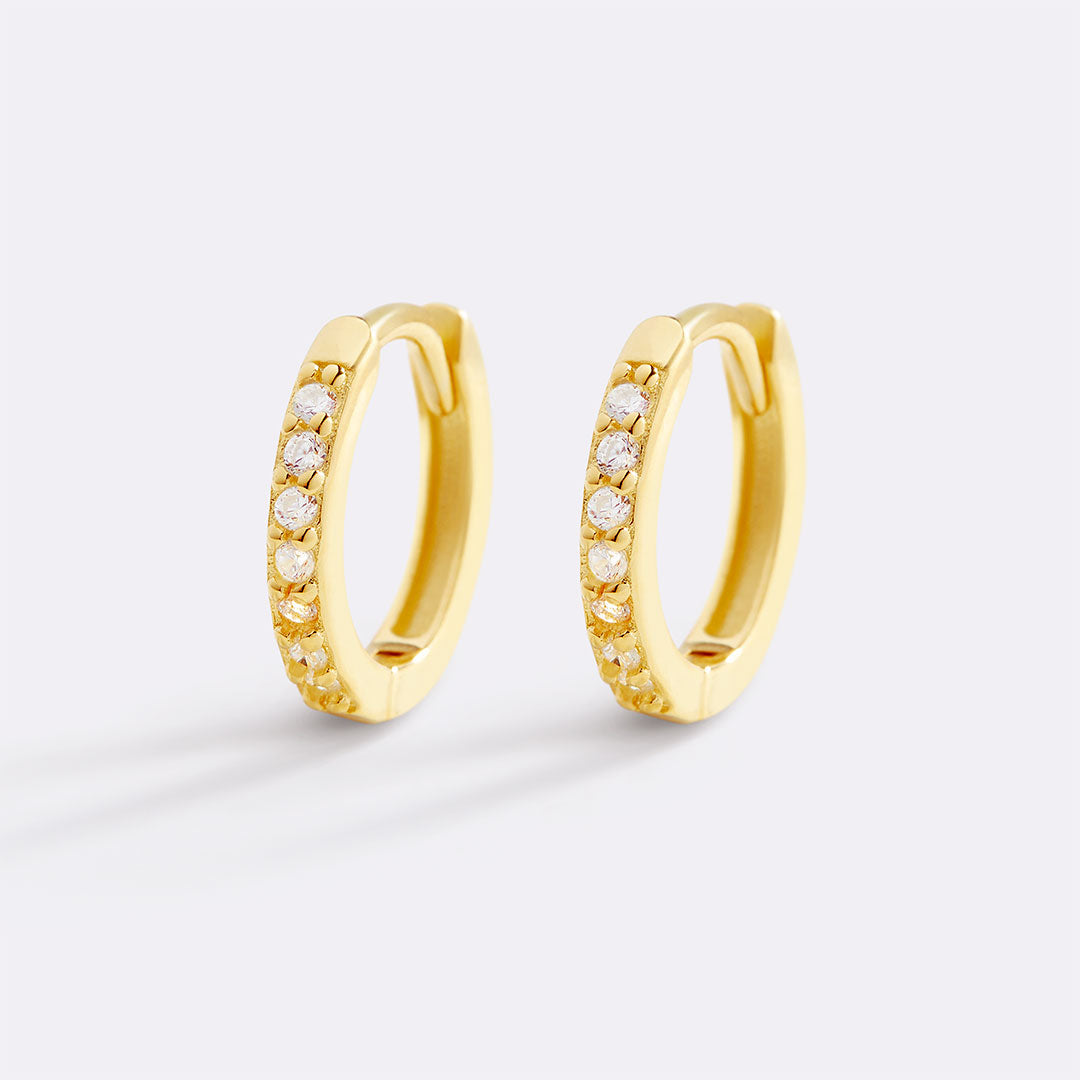 Elevate your everyday elegance with the stunning Pavé Huggie Hoop Earrings. These chic hoops are adorned with shimmering AAA-grade cubic zirconia stones, offering a subtle sparkle that enhances any outfit. Crafted in sterling silver, with option for yellow gold plate or white gold plate, rose gold plate, they provide both durability and a luxurious finish.
