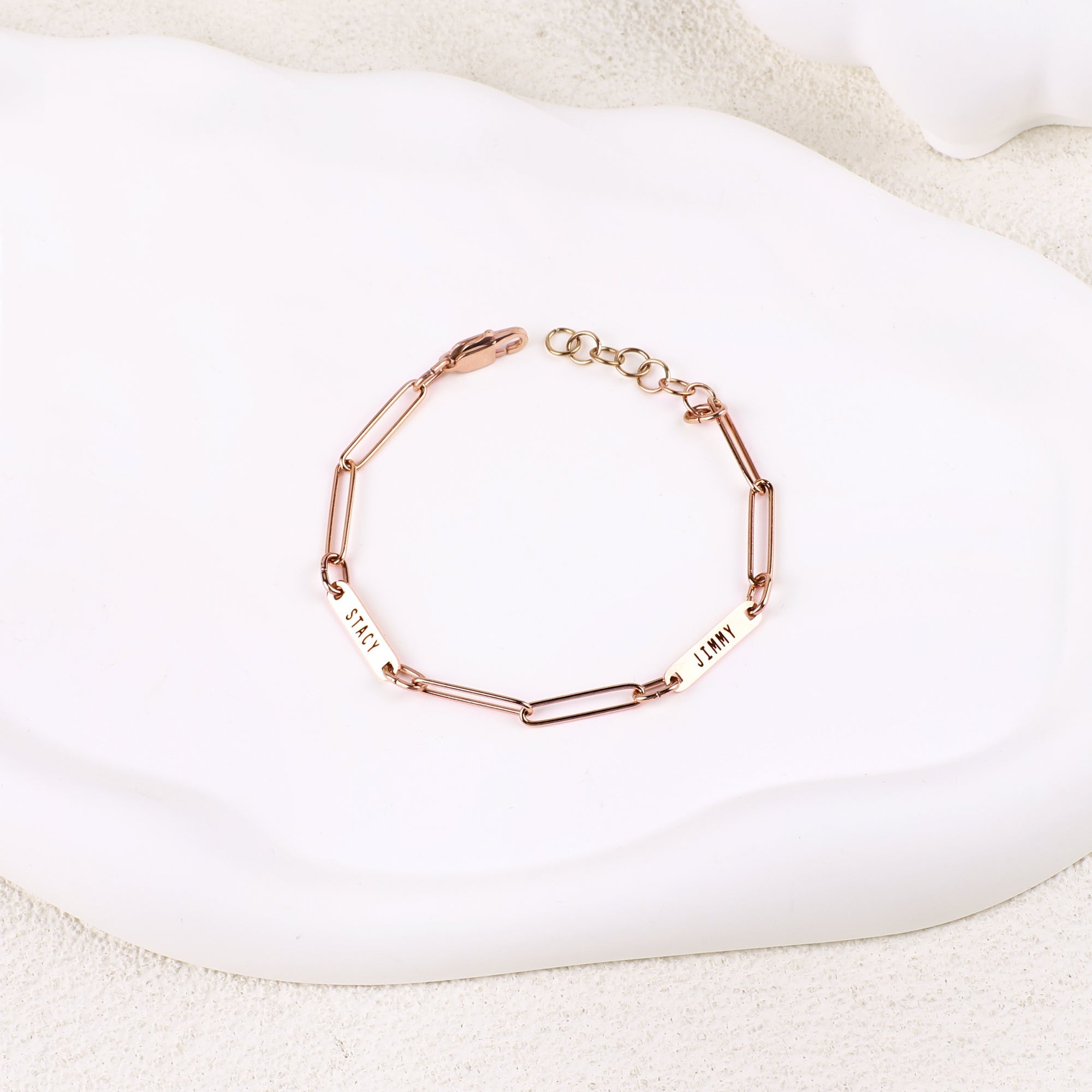 This exquisite bracelet features a unique paperclip chain design that adds a modern touch to any outfit. The bracelet length measures 7 inches with an additional 1-inch extender, providing a customizable fit for every wrist.