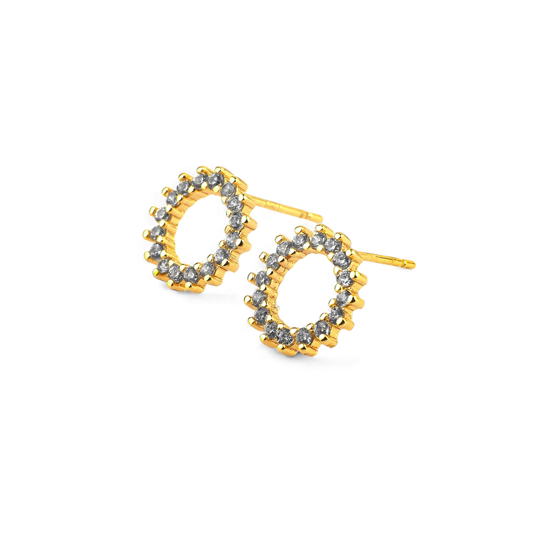These luxurious Sunburst Earrings feature a classic sunburst design made with sparkling CZ stones for a touch of glamour. Crafted in sterling silver, with option for yellow gold plate or white gold plate, rose gold plate. These earrings come in a pair and make a timeless statement with lasting quality.
