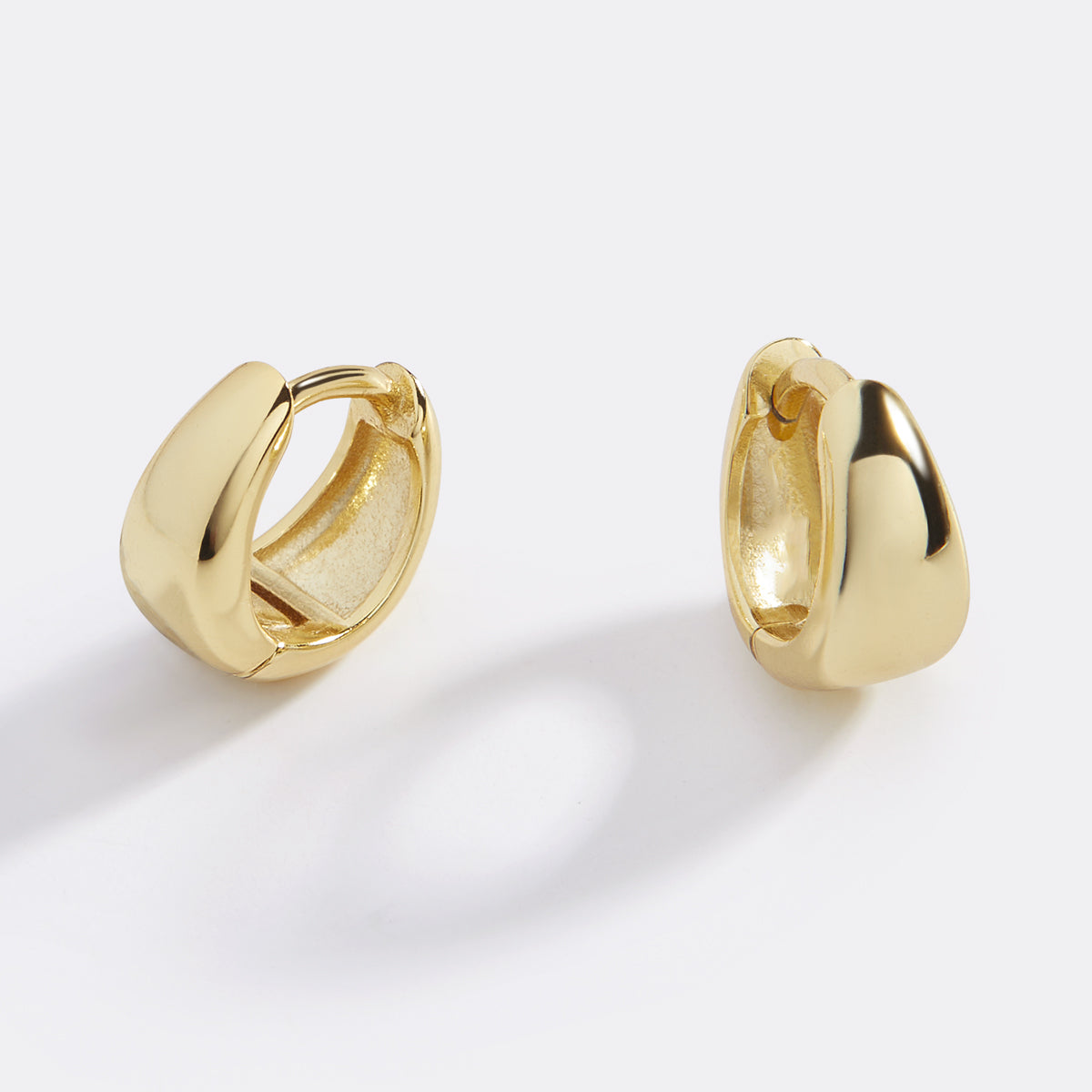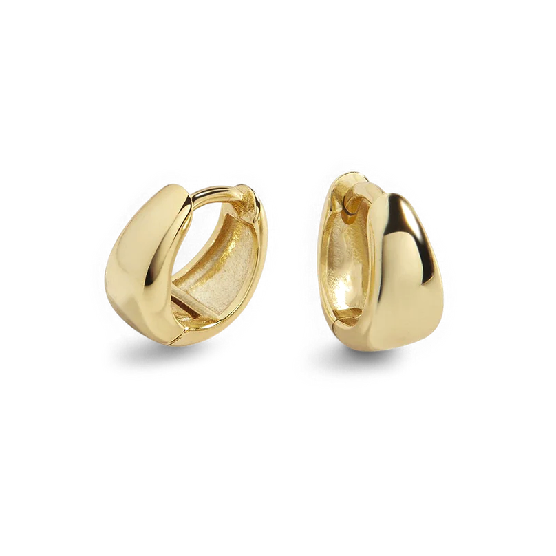 These refined earrings showcase a sleek teardrop shape integrated into the huggie hoop design, providing a seamless blend of elegance and modern style. Crafted in sterling silver, with option for yellow gold plate or white gold plate, rose gold plate. Ideal for adding a sophisticated touch to any ensemble.