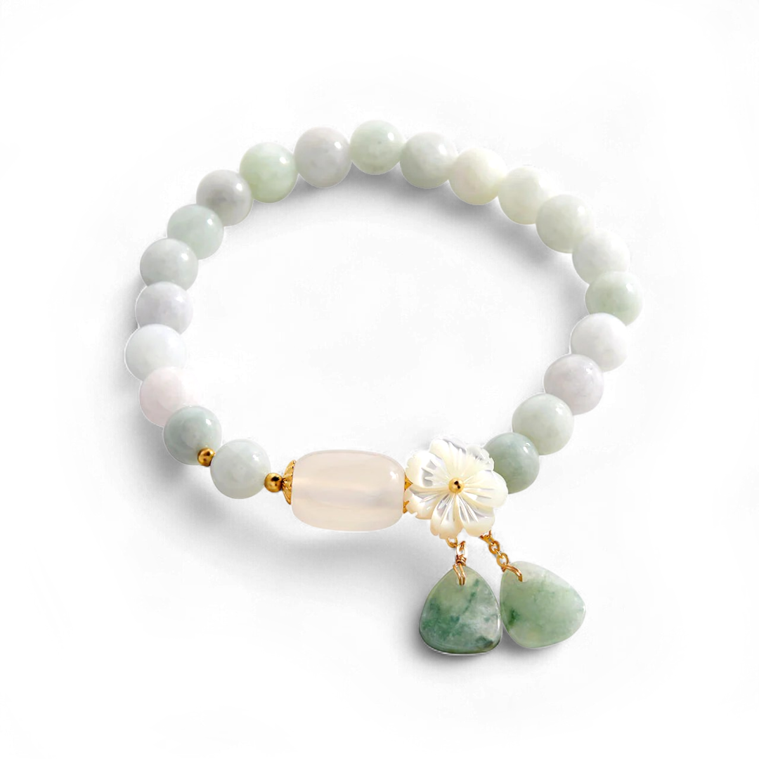 This exquisite bracelet features elegant white jade beads that effortlessly enhance any outfit. The design showcases a harmonious blend of style and comfort, making it a perfect accessory for any occasion.