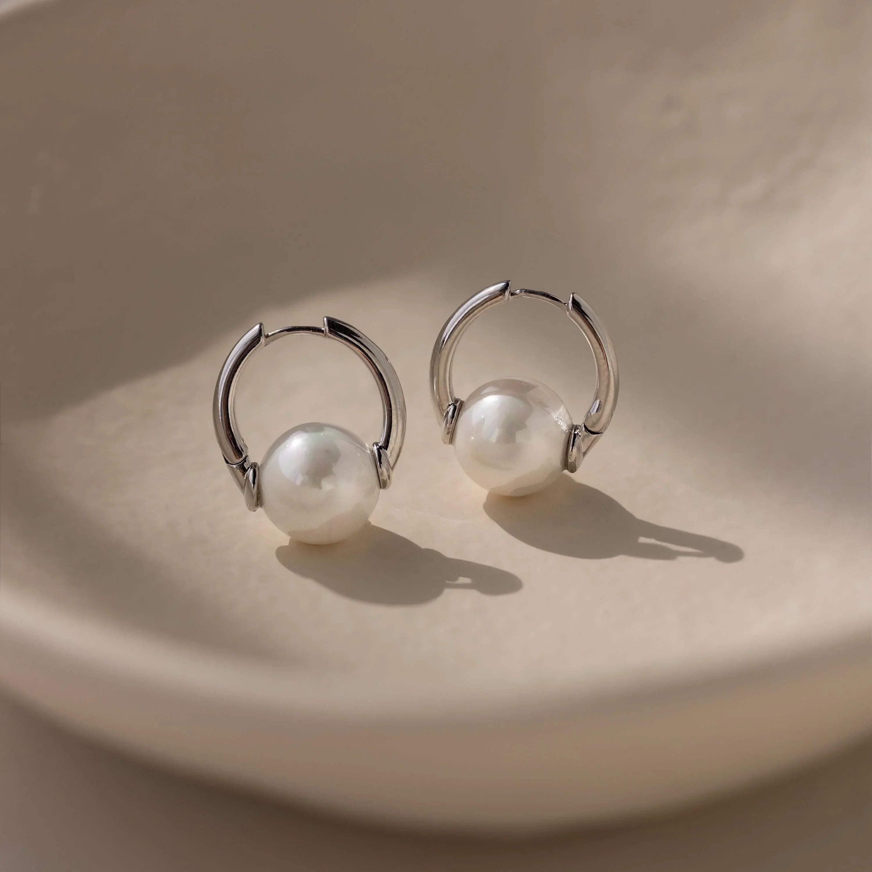 Bold Round Pearl Hoops