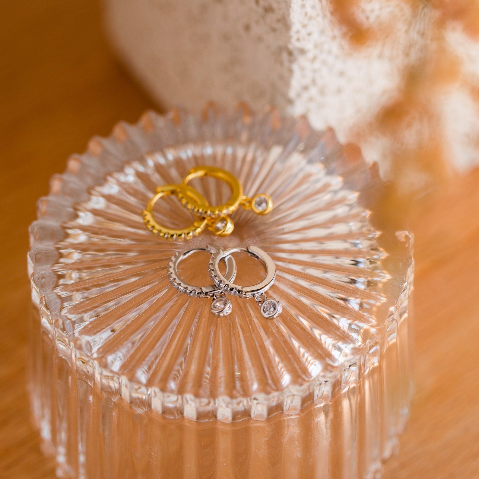 To ensure your Diamond Huggie Earrings retain their sparkle and shine, follow these care instructions:
