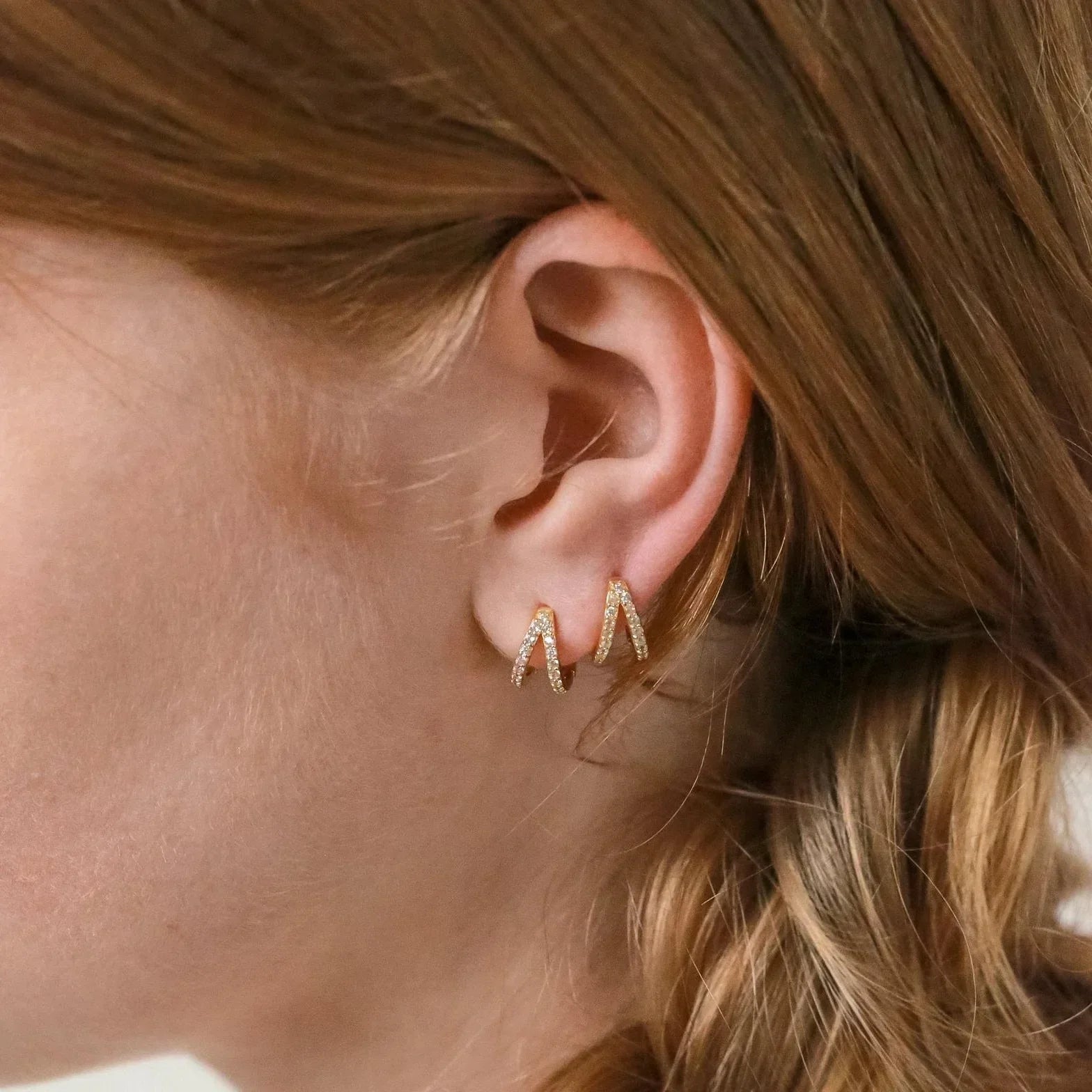 Elevate your style with the Esther Duo Pave Huggie Hoops. Click here to shop now!