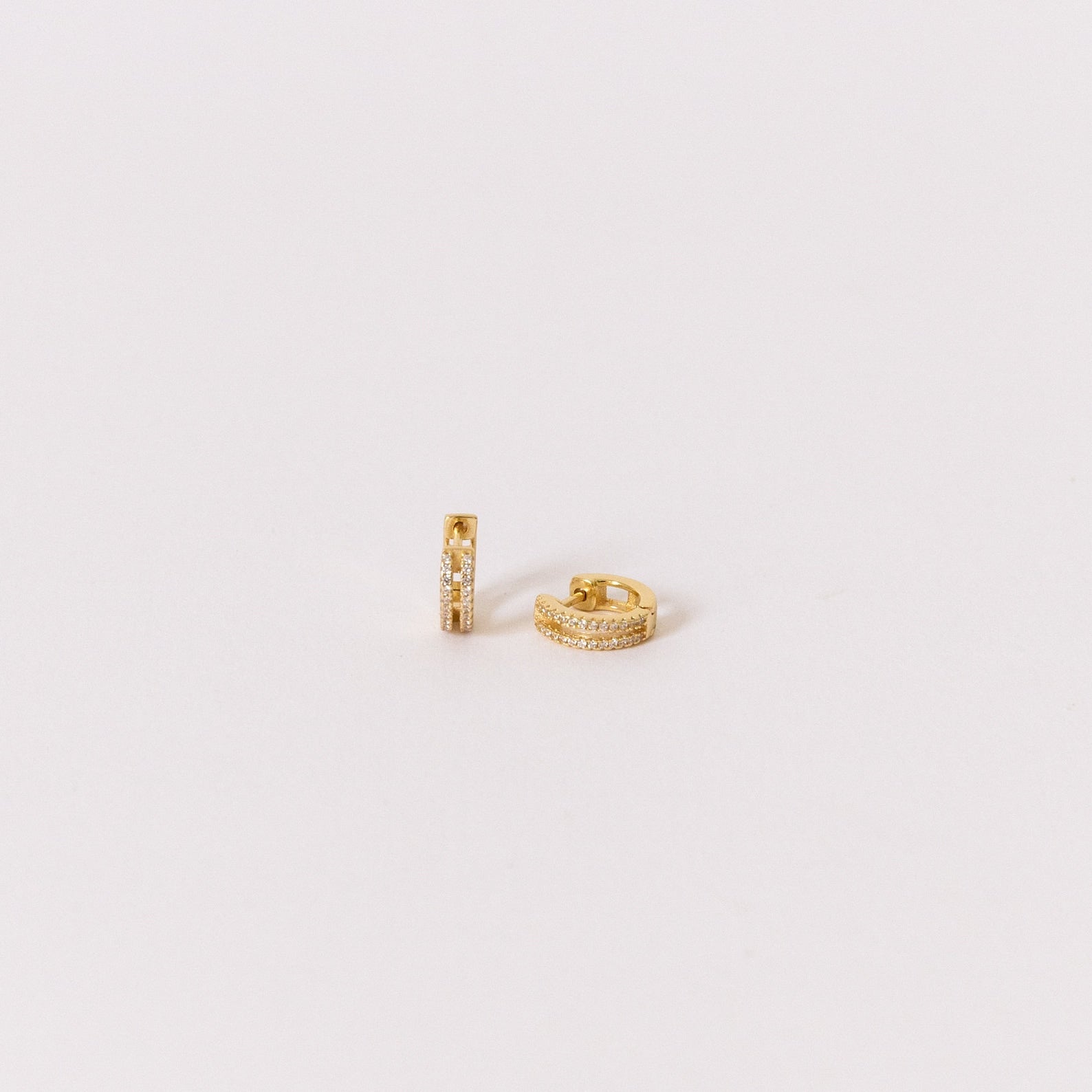 Introducing the Ashley Duo Pavé Huggie Earrings, where timeless elegance meets effortless sophistication. Designed for the modern minimalist, these dainty double-hoop earrings add a refined sparkle to any look. Whether you're dressing up for an evening out or enhancing your everyday style, these versatile huggies are the perfect staple accessory.