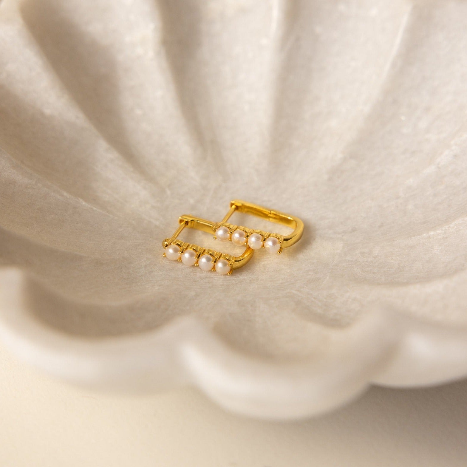 Mesmerizing in their dainty simplicity, our Rectangular Freshwater Pearl Hoop Earrings bring a refined elegance to your everyday wardrobe. The sleek rectangular hoop silhouette is gracefully adorned with small natural freshwater pearls, adding a soft shimmer and timeless charm.