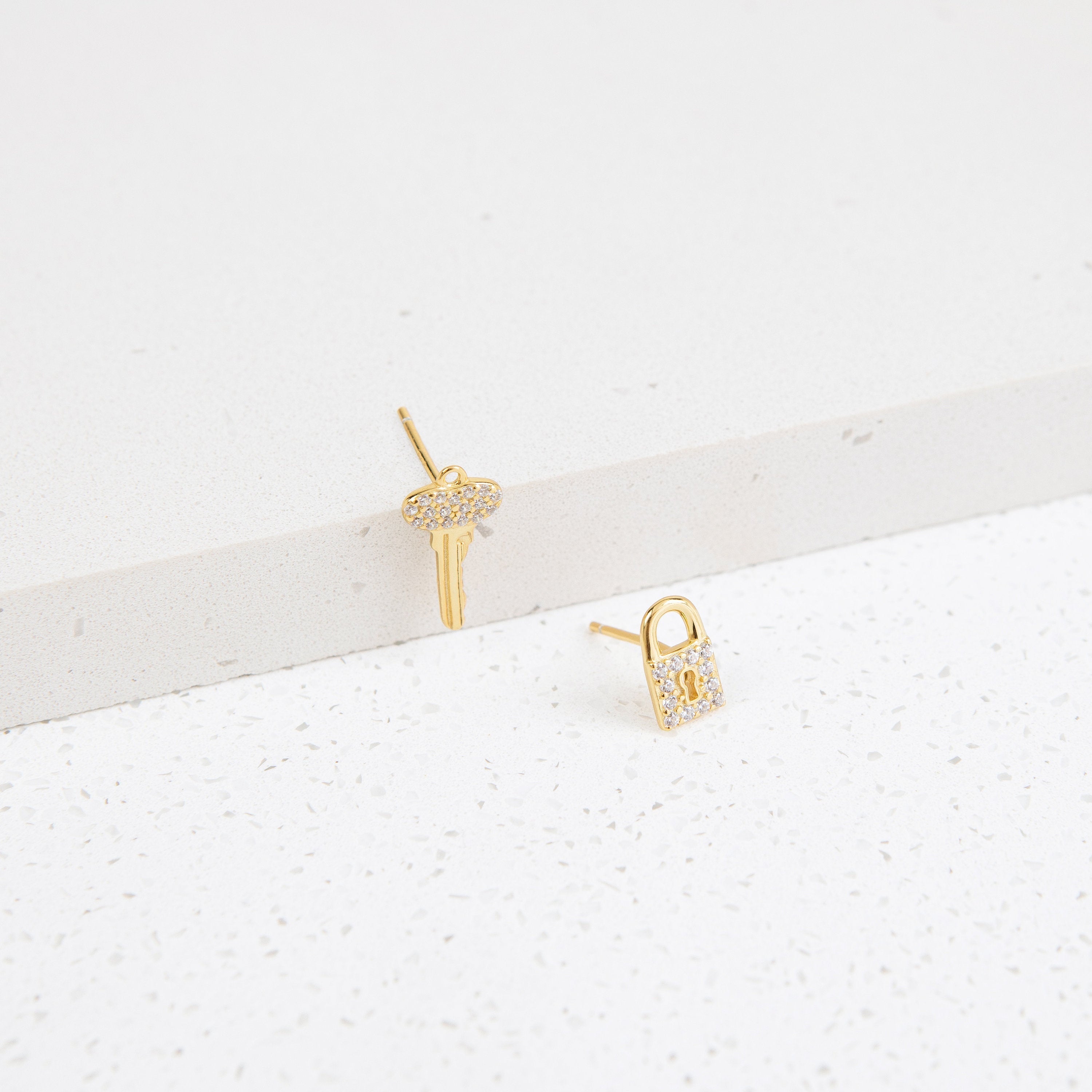 Upgrade your style with the Locke Studs. Add these unique lock and key earrings to your collection.