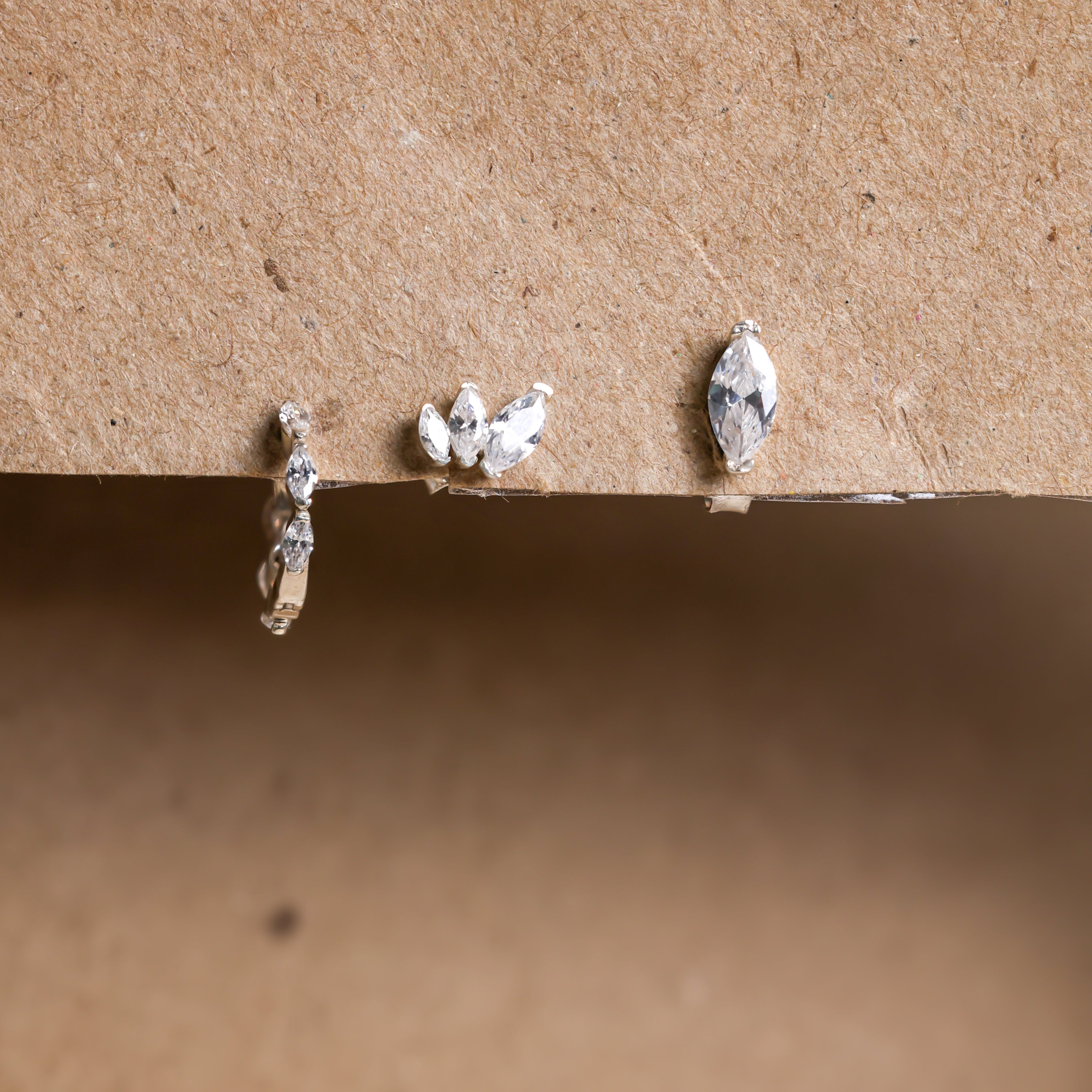 • Triple Marquise Floral Stud: ~5.5x7mm of floral-inspired sparkle.