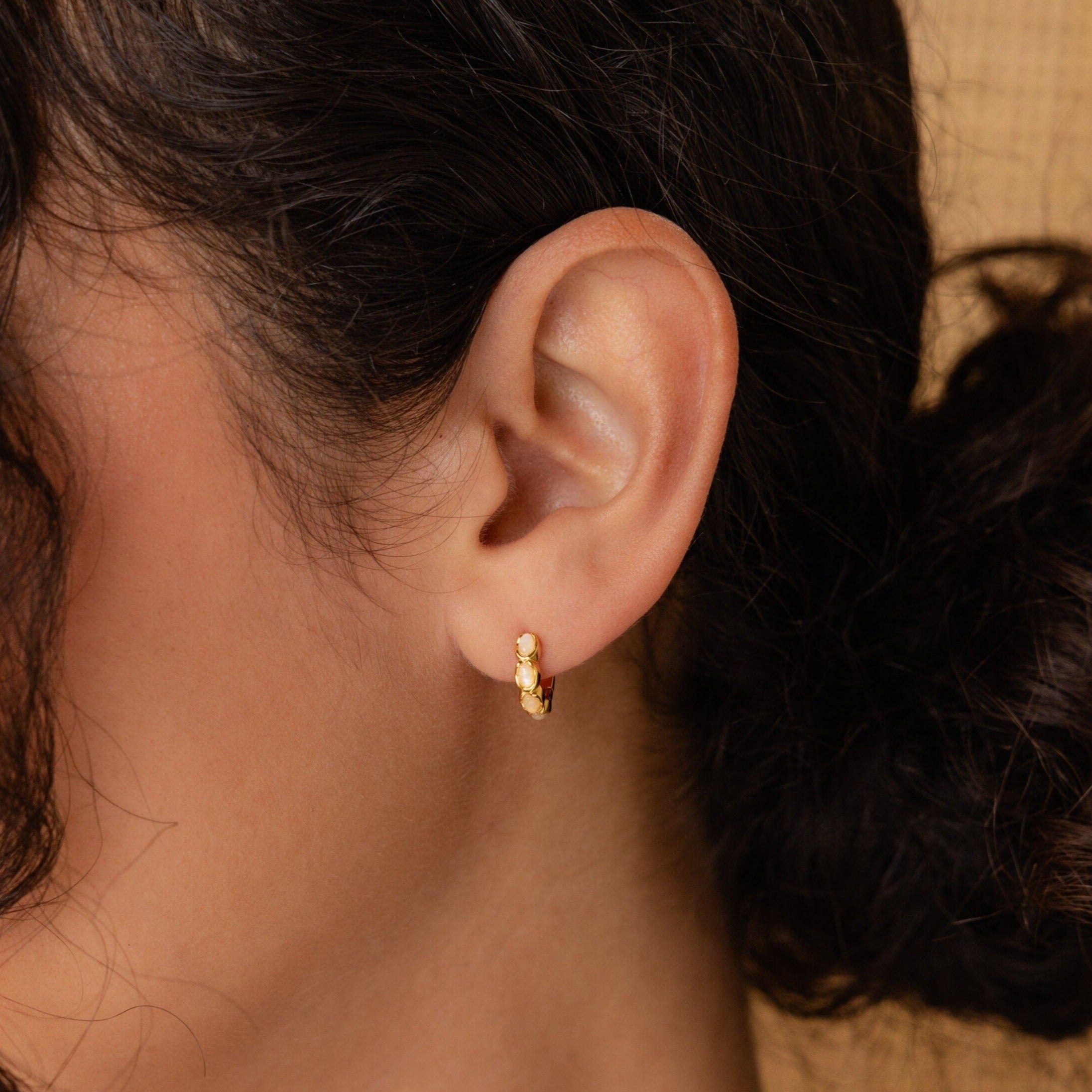 Shop Now: Elevate your style with the ethereal glow of the Moonstone Huggie Hoop Earrings. Order today and embrace the beauty of moonstone in your everyday look.
