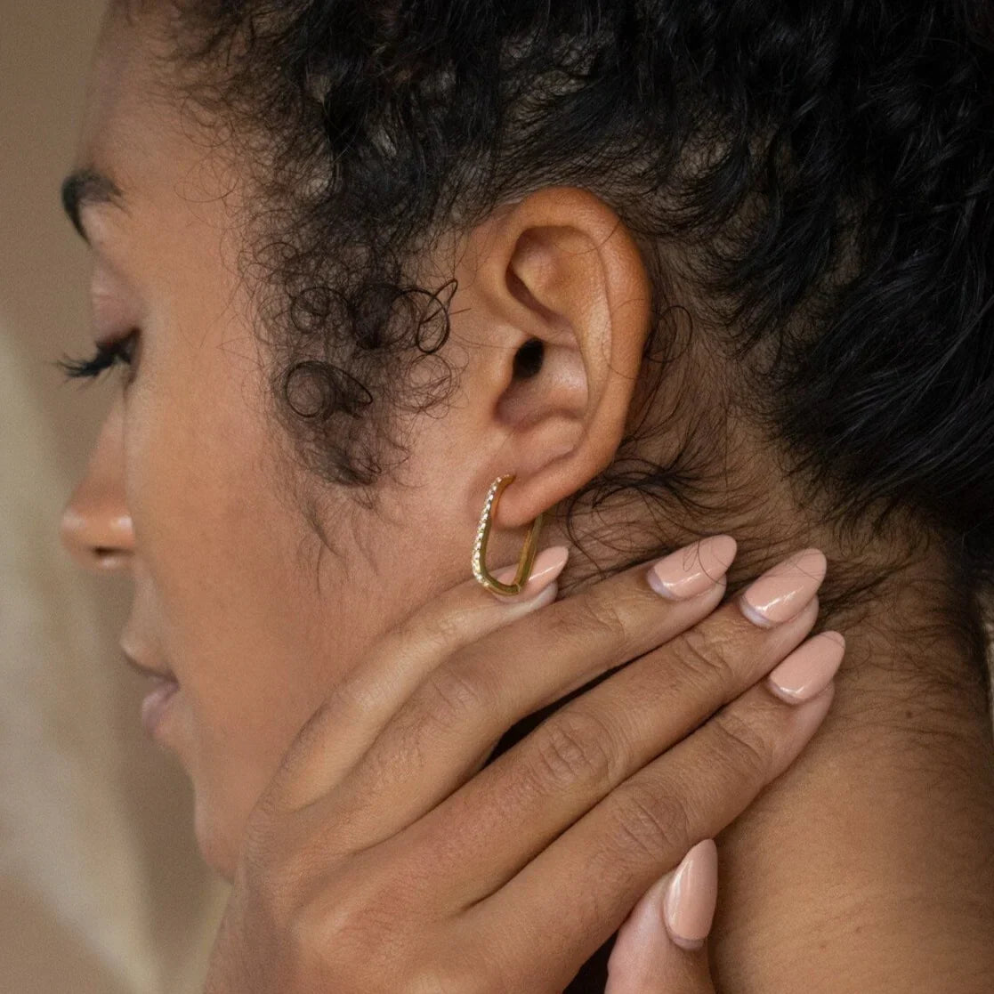 Introduce your ears to the Pave Link Earrings – a simple yet striking piece that adds instant polish to any outfit. These elongated cable link hoops are adorned with pave-set CZ stones, offering a delicate shimmer that elevates both everyday and evening looks.