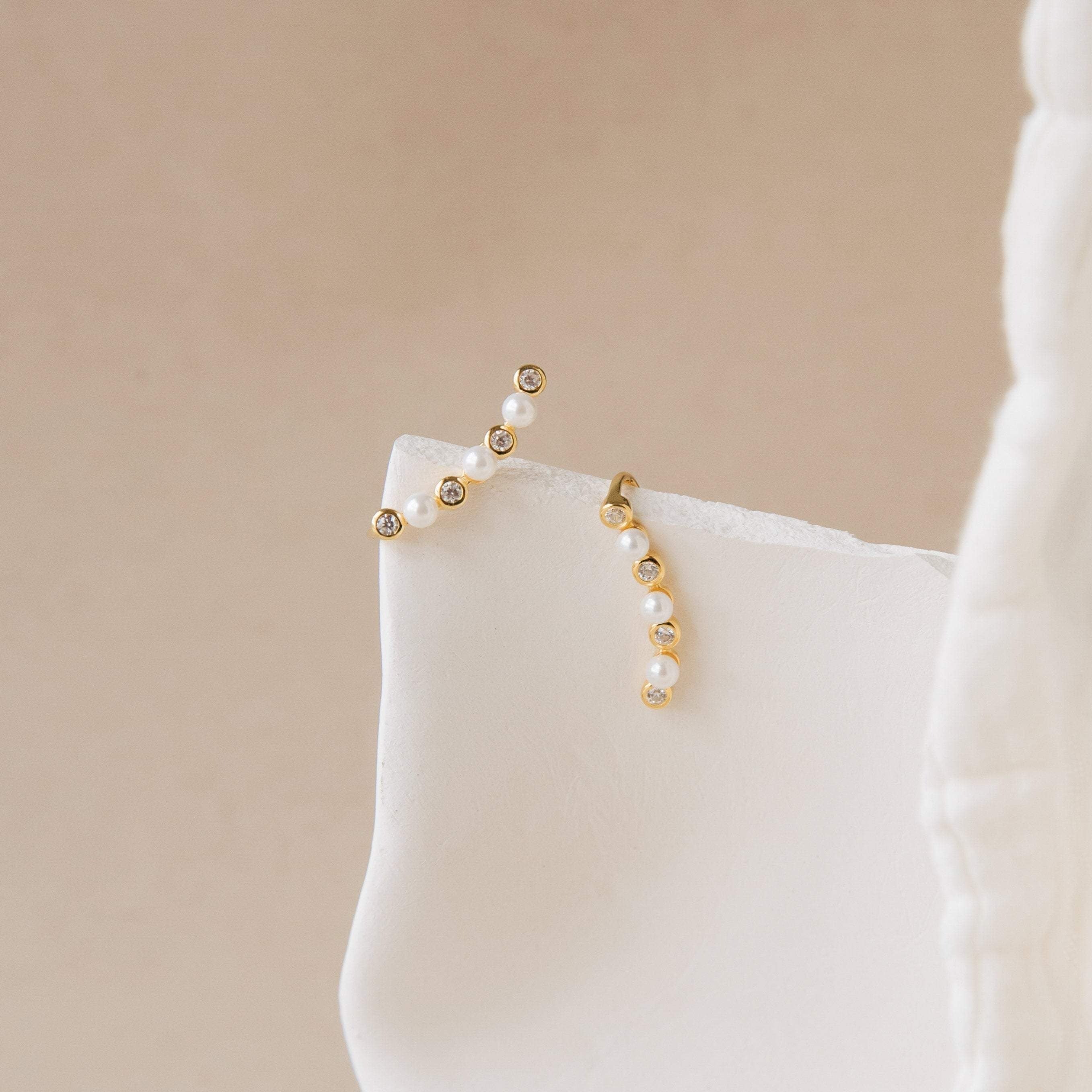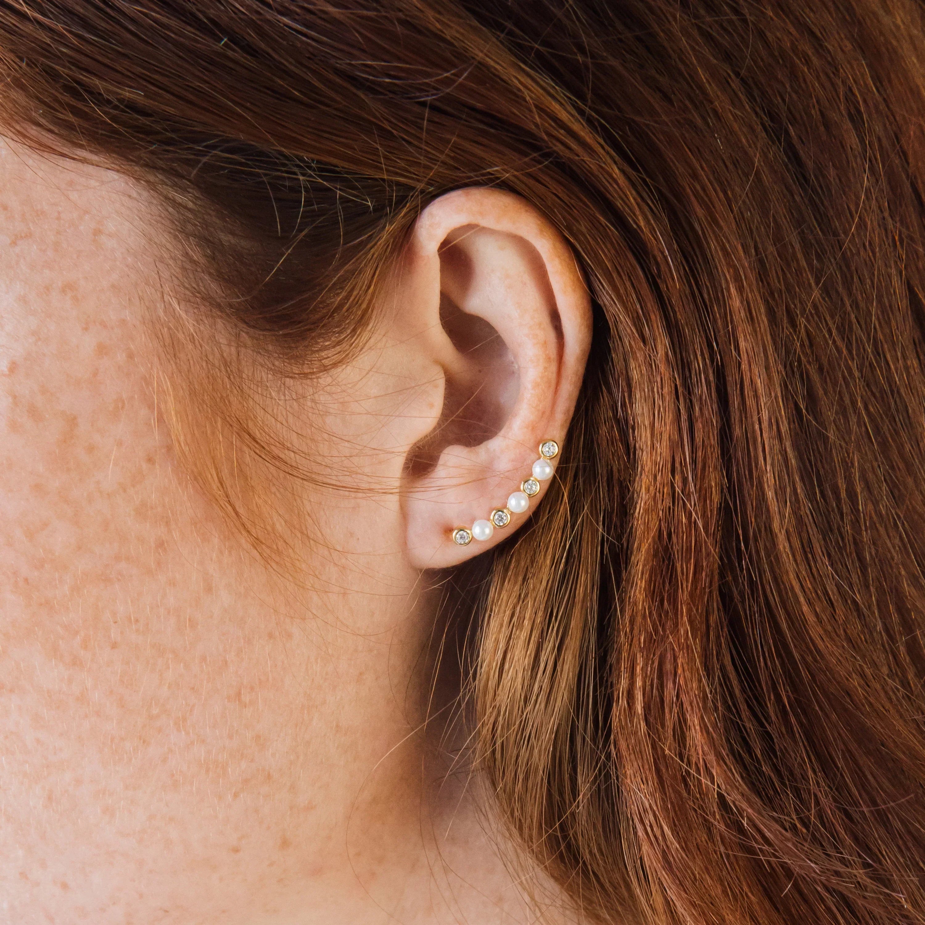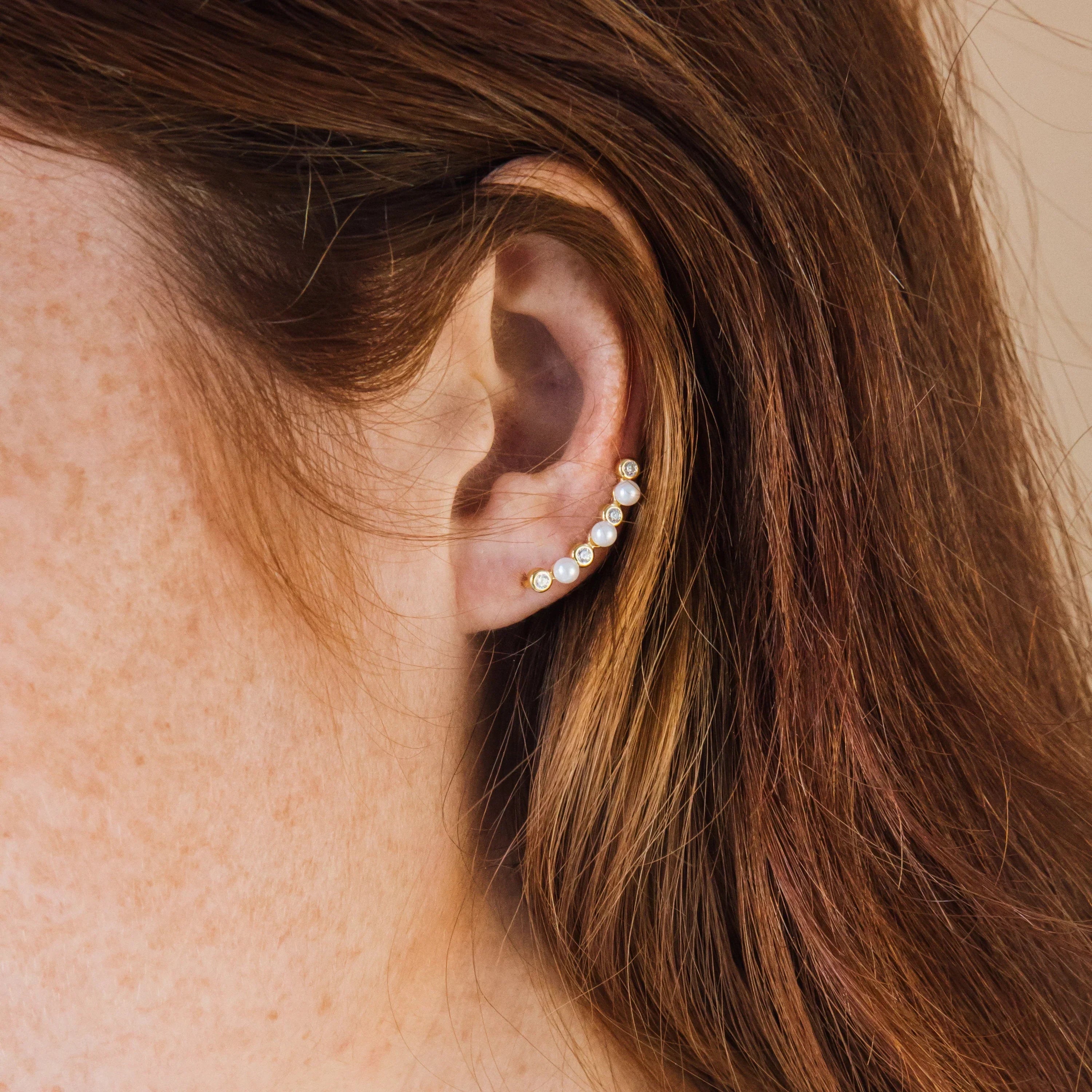 Be effortlessly on-trend with a nod to timeless charm. Our Pearl Climbers are the ultimate fusion of modern minimalism and heirloom elegance. Designed to mimic a graceful climb up your ear, these earrings feel contemporary yet pair beautifully with vintage pearl jewelry.