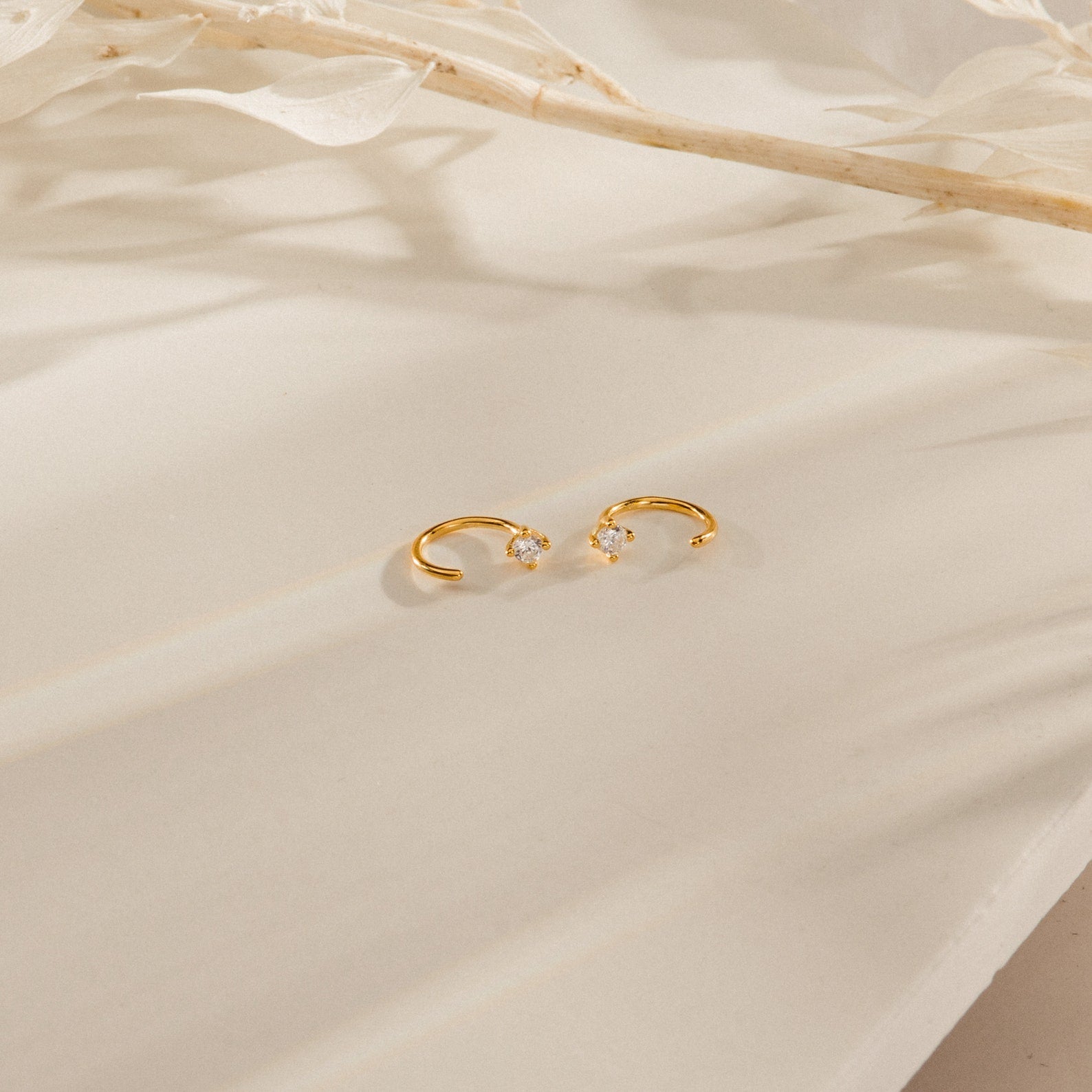 These petite huggies offer a perfect combination of delicate design and just the right amount of sparkle, making them an ideal choice for everyday wear. Their minimalist appeal and subtle diamond detail ensure they complement a variety of styles and can be easily mixed with other pieces in your jewelry collection.