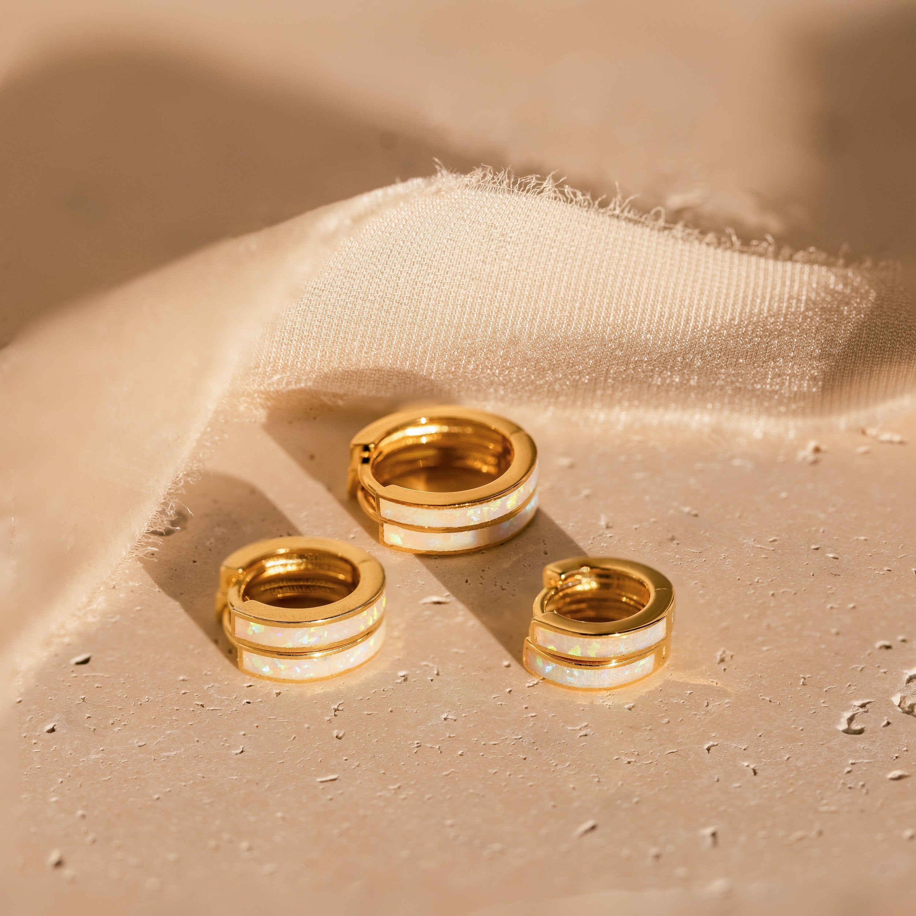 - Adventure Meets Elegance: These opal inlay huggies are perfect for those feeling daring yet elegant.