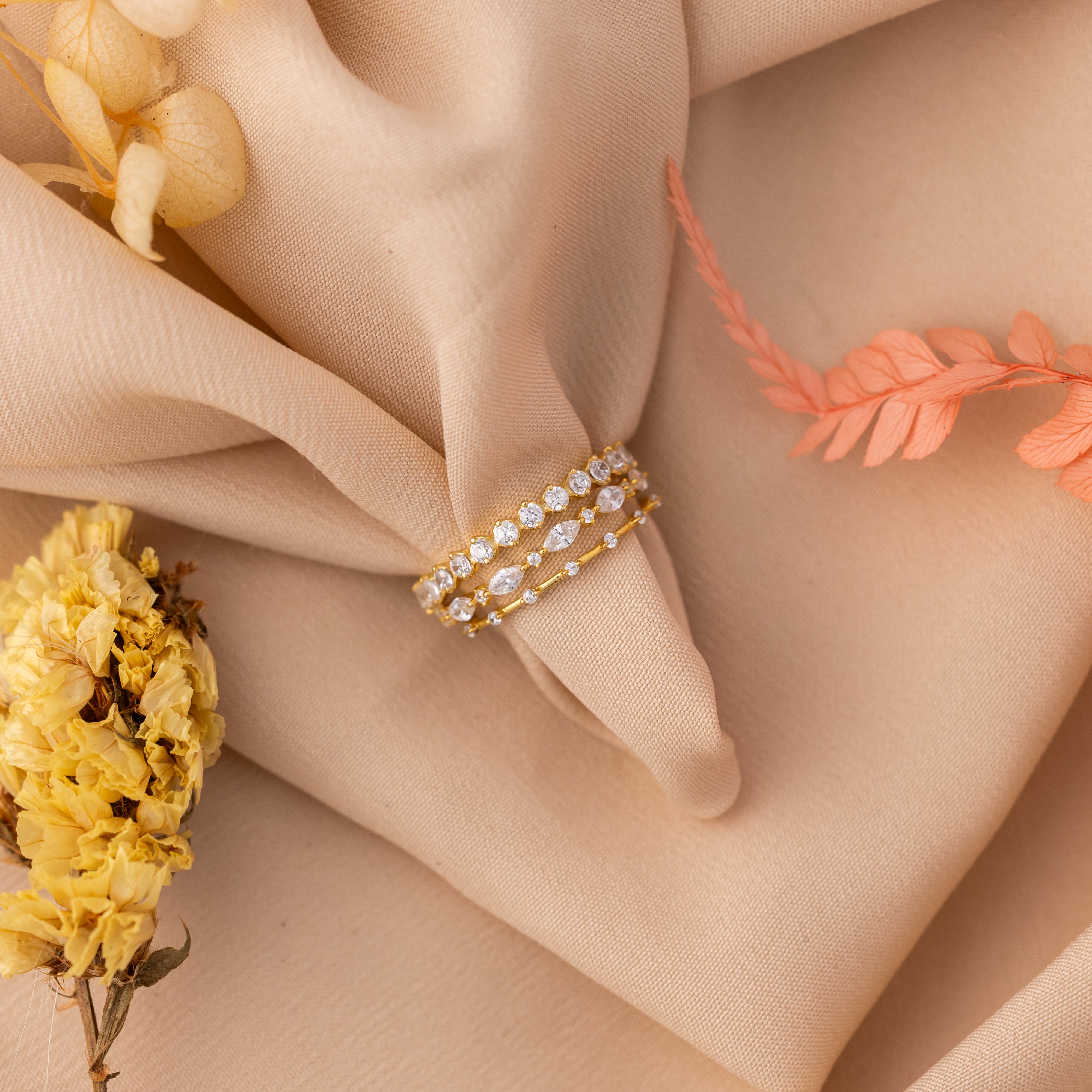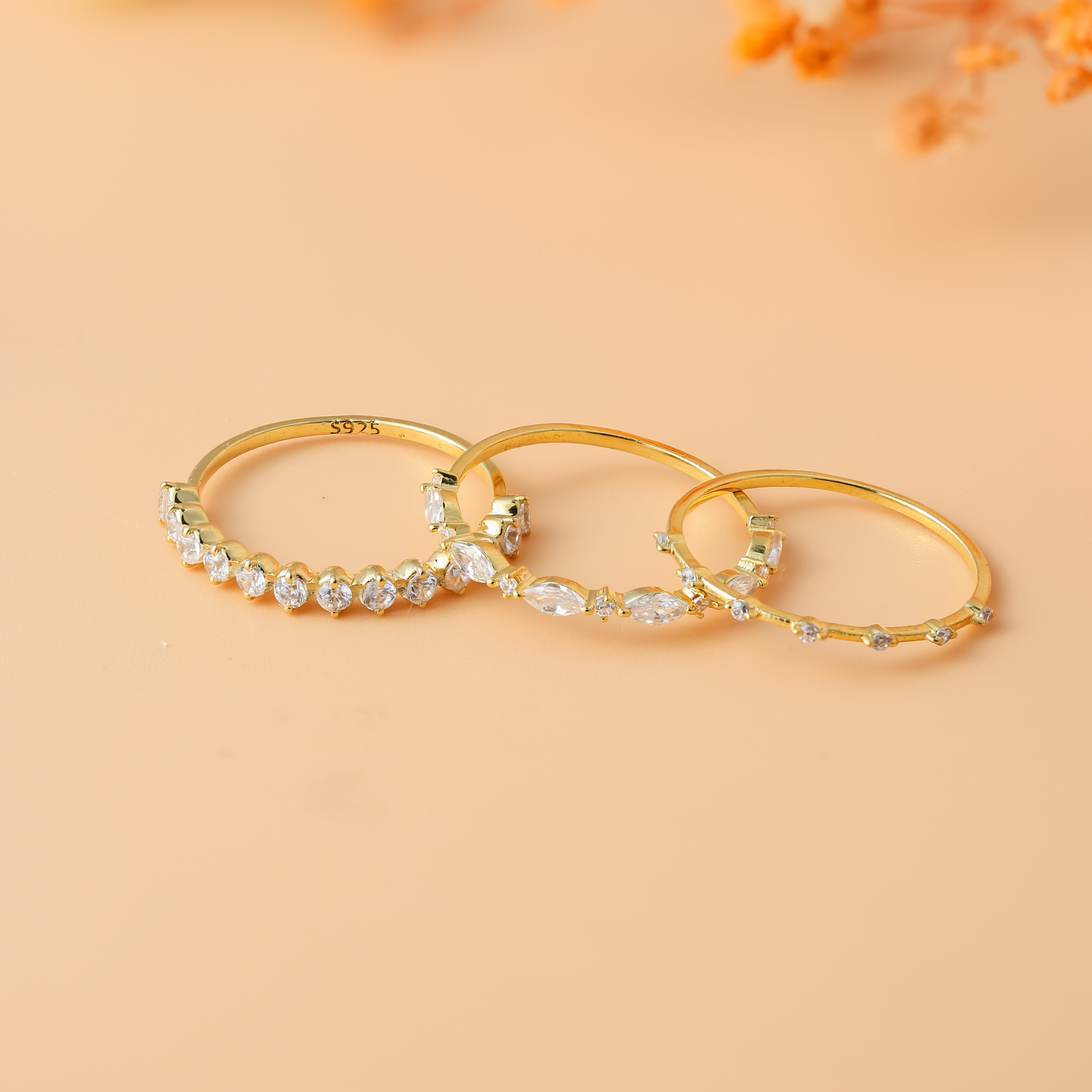 Versatile Stacking Design: Wear each ring individually for a subtle hint of sparkle, or stack them together to create a layered, dynamic look. Perfect for both special occasions and everyday wear.