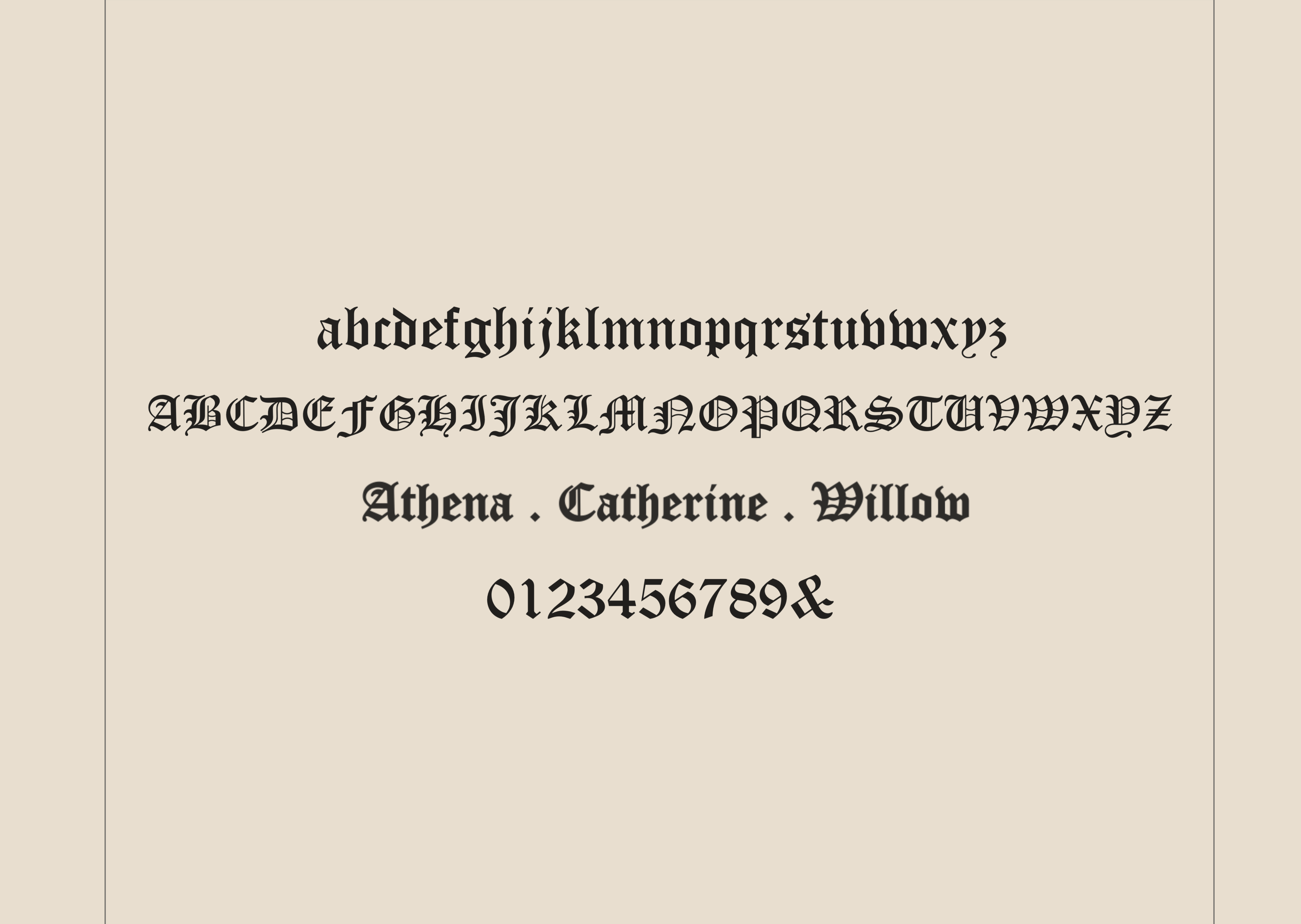 • Letter Style: Lowercase Old English font (approx. 3mm)