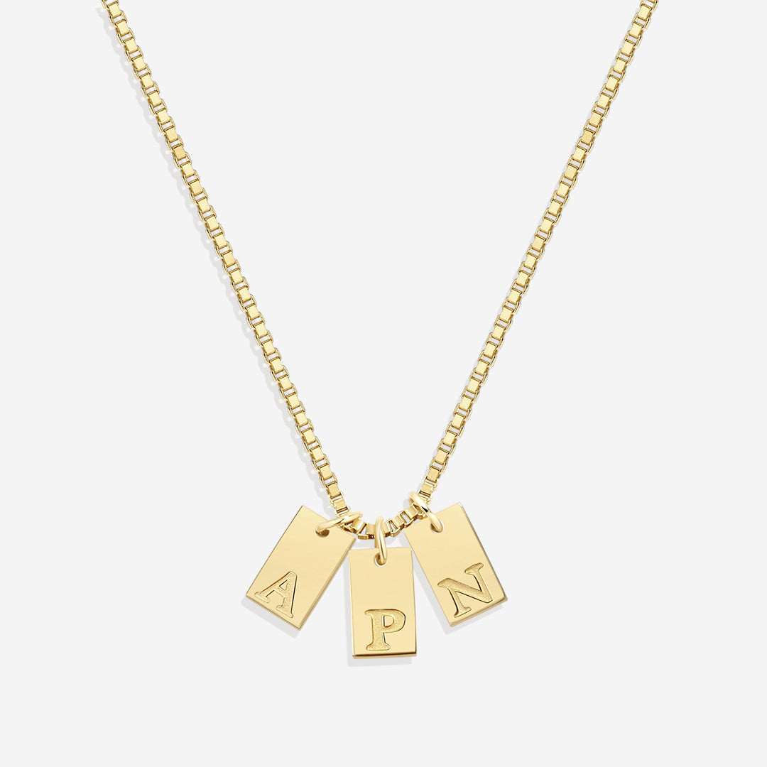 Elevate your everyday style with the Initial Tag Necklace—a timeless and meaningful accessory designed just for you. Crafted in sterling silver, with option for yellow gold plate or white gold plate, rose gold plate. Customize it with up to 5 tags with your choice of initial (A-Z) for a personal and heartfelt touch, making it an ideal gift for yourself or a loved one. Whether worn alone or layered, this versatile necklace adds a subtle yet sophisticated charm to any outfit.