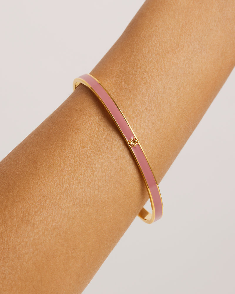 Yellow Gold Vermeil Born to Bloom Enamel Bangle - Pink Clay