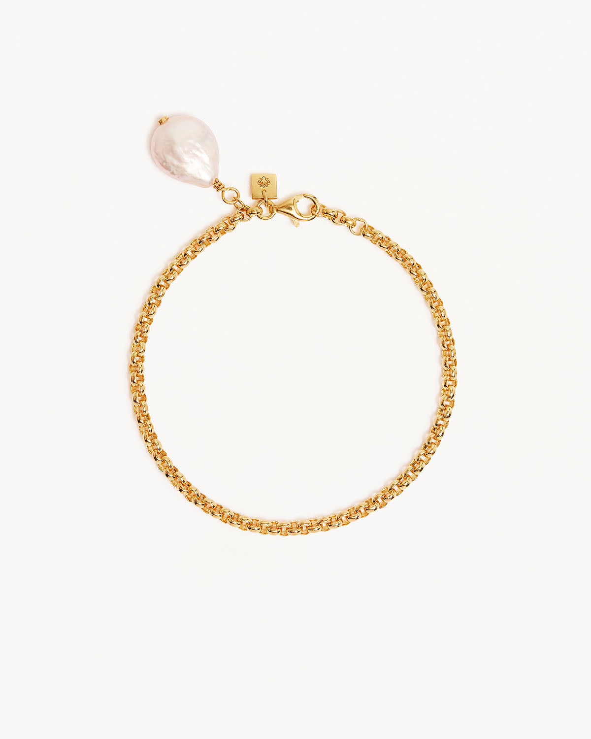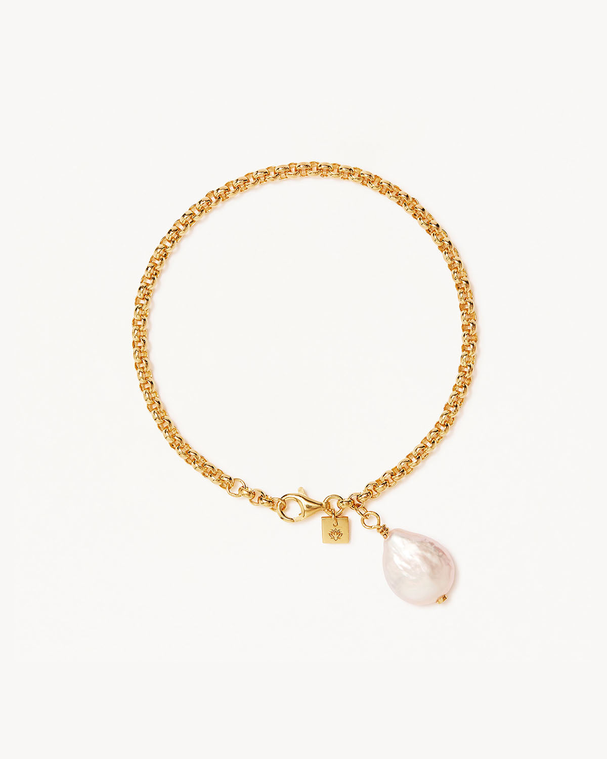 Connect with your inner peace when you wear our Embrace Stillness Pearl Bracelet. This elegant belcher chain bracelet features a natural baroque coin pearl, bringing you tranquillity so you can embrace harmony within. Each piece will be completely unique as our natural freshwater pearls hold infinite variations in shape and lustre.
