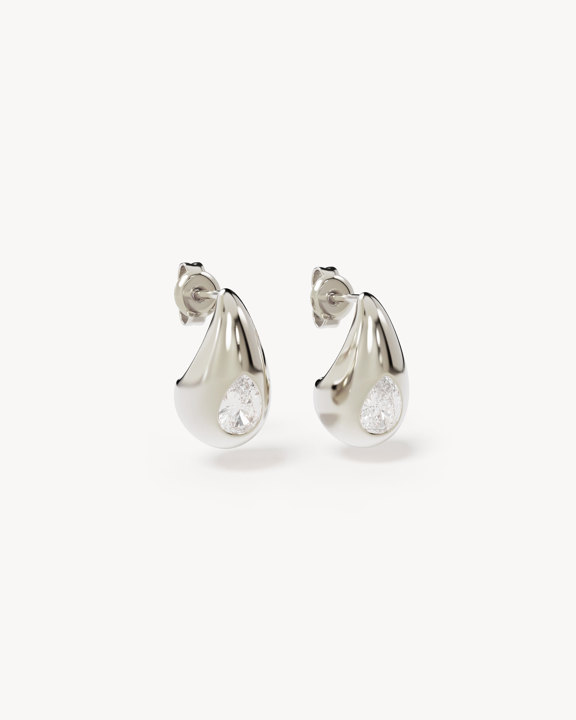 These earrings feature sparkling pear-cut cubic zirconias, adding a touch of elegance to any outfit.
