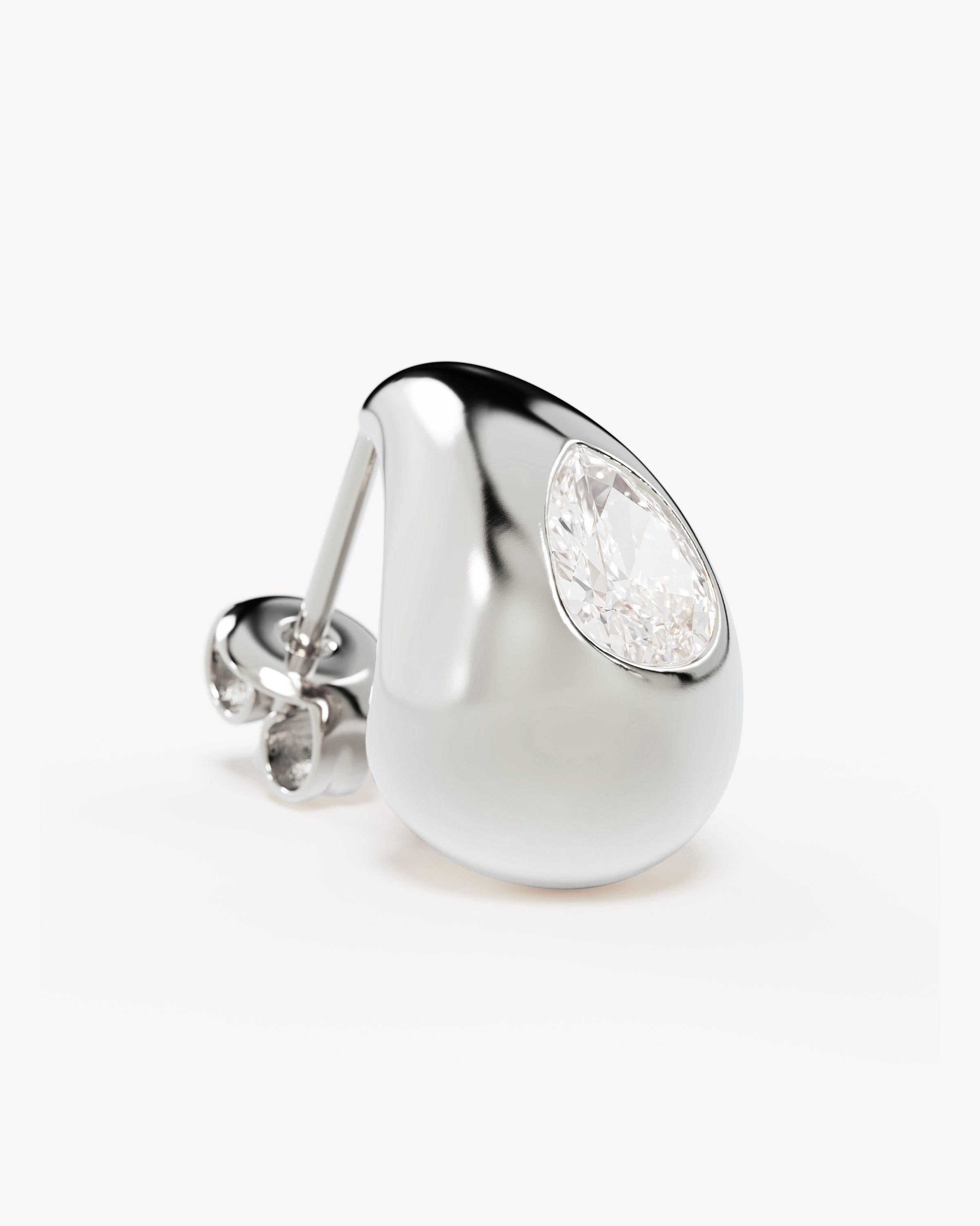 The Dewdrop Small Earrings are inspired by the fleeting moment when a single water droplet hangs from a twisting vine, serving as a precious reminder of the connections that nourish and renew us.