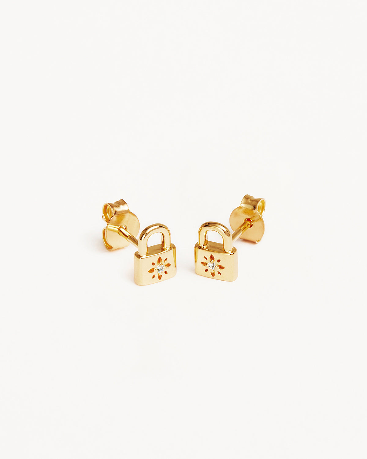 Yellow Gold Vermeil Crystal Lotus Padlock Stud Earrings