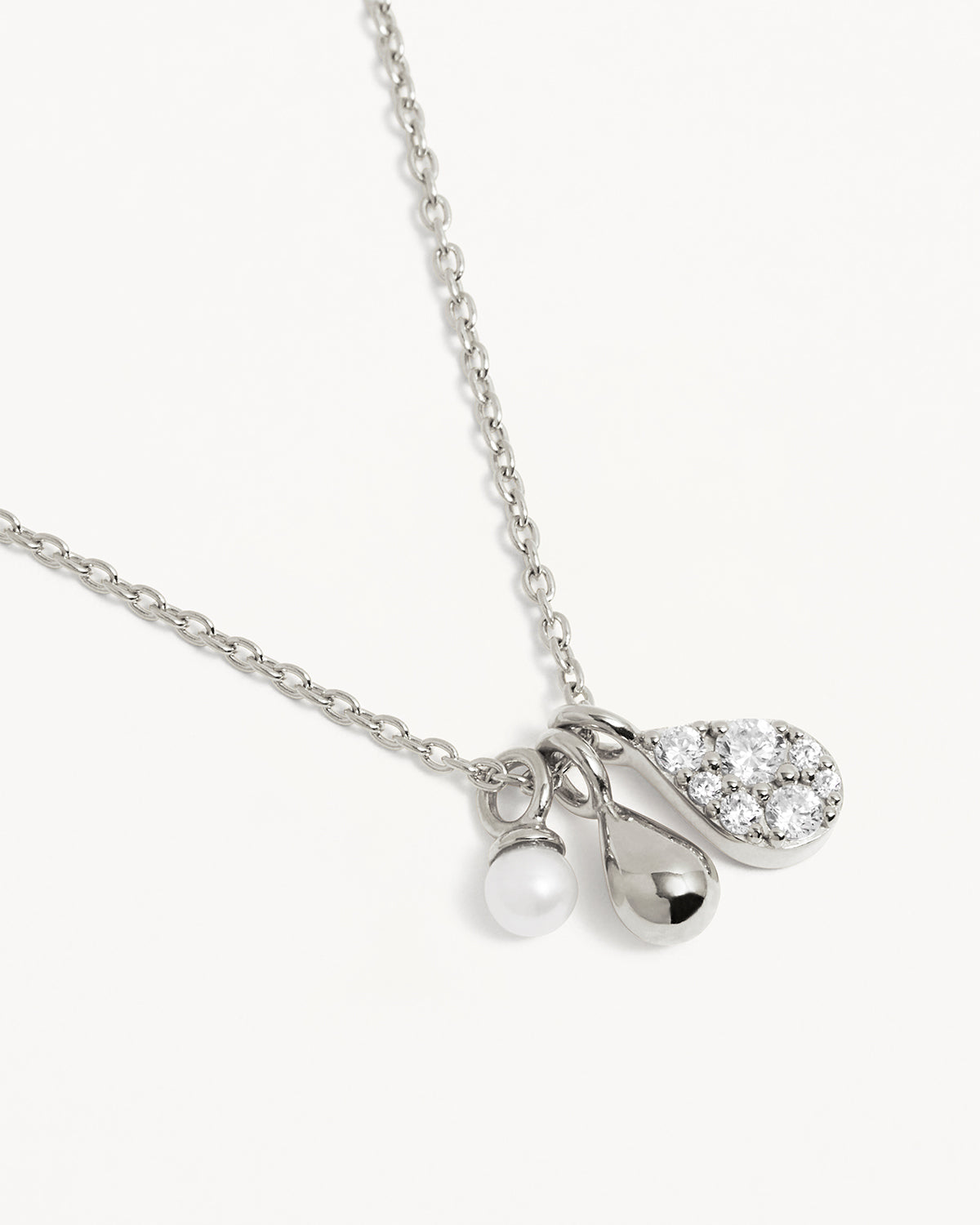 Inspired by the shimmering sea foam that forms as the tide touches the shoreline, this necklace is a reminder to embrace each small, magical moment. Designed to capture the droplets and mist that disperse as waves crash, this piece features pavé set cubic zirconias and freshwater pearls.