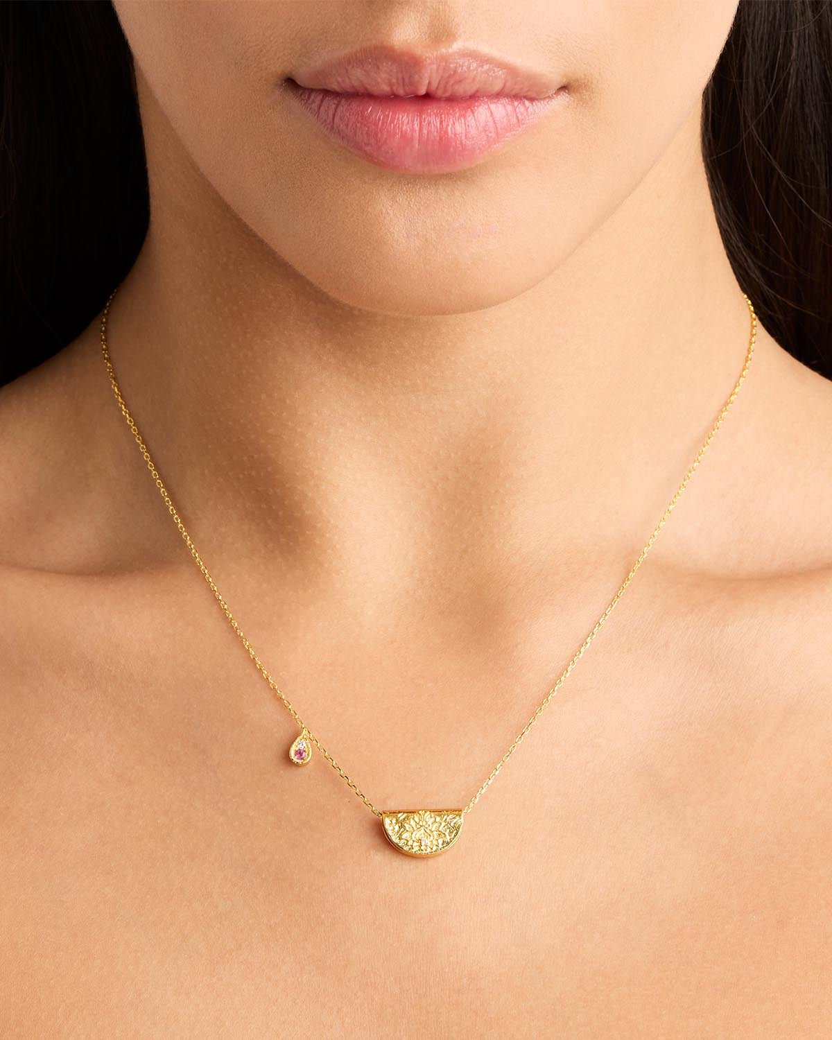 Yellow Gold Vermeil Lotus Birthstone Necklace - October - Pink Tourmaline