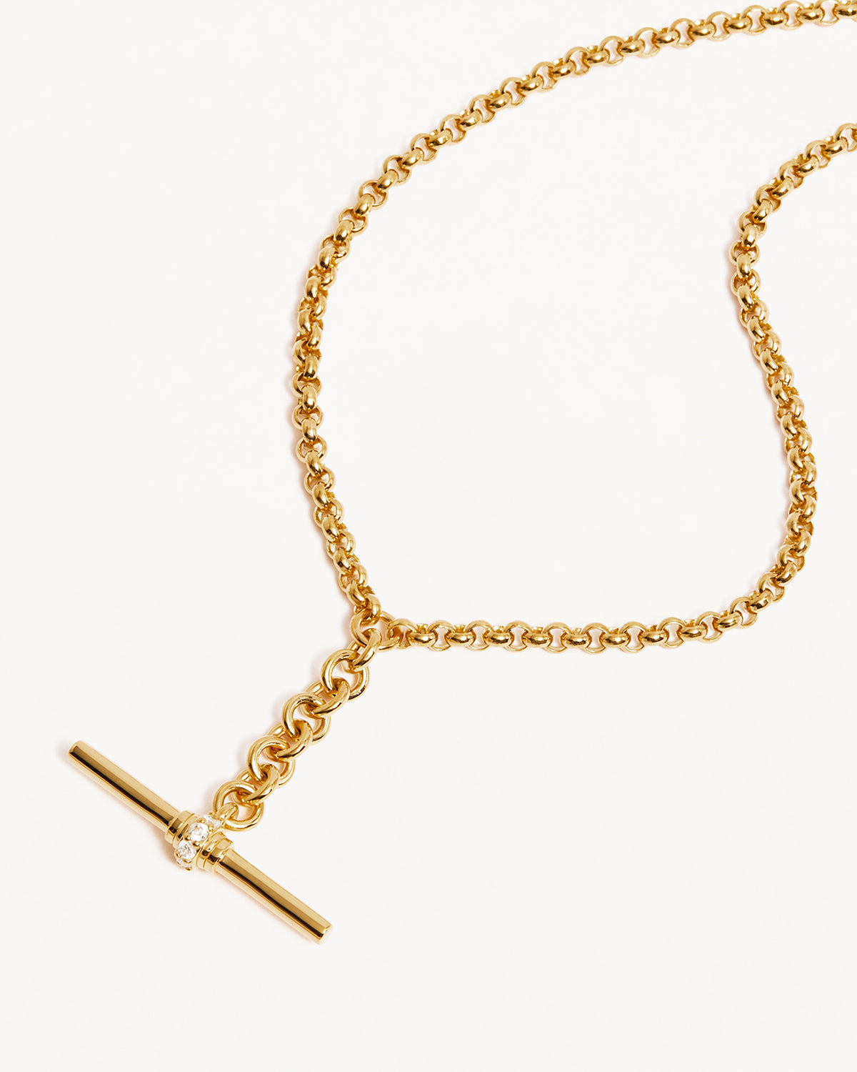 Radiate inner strength with this vintage-inspired fob chain necklace. Featuring a crystal embellished t-bar, this piece is designed to be worn alone as a statement staple or layered with your favorite necklaces for an unapologetically bold moment.