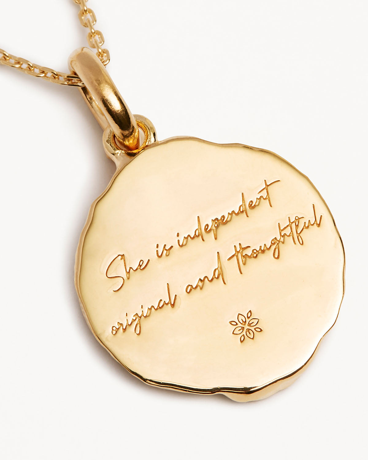 Celebrate the innovative spirit and individuality of Aquarians with our radiant necklace. Adorned with a hand-drawn artwork by a long-time collaborator and the inscription "She is independent, original and thoughtful," this meaningful necklace encourages you to embrace self-love so profoundly that your mind and body always feel like home.