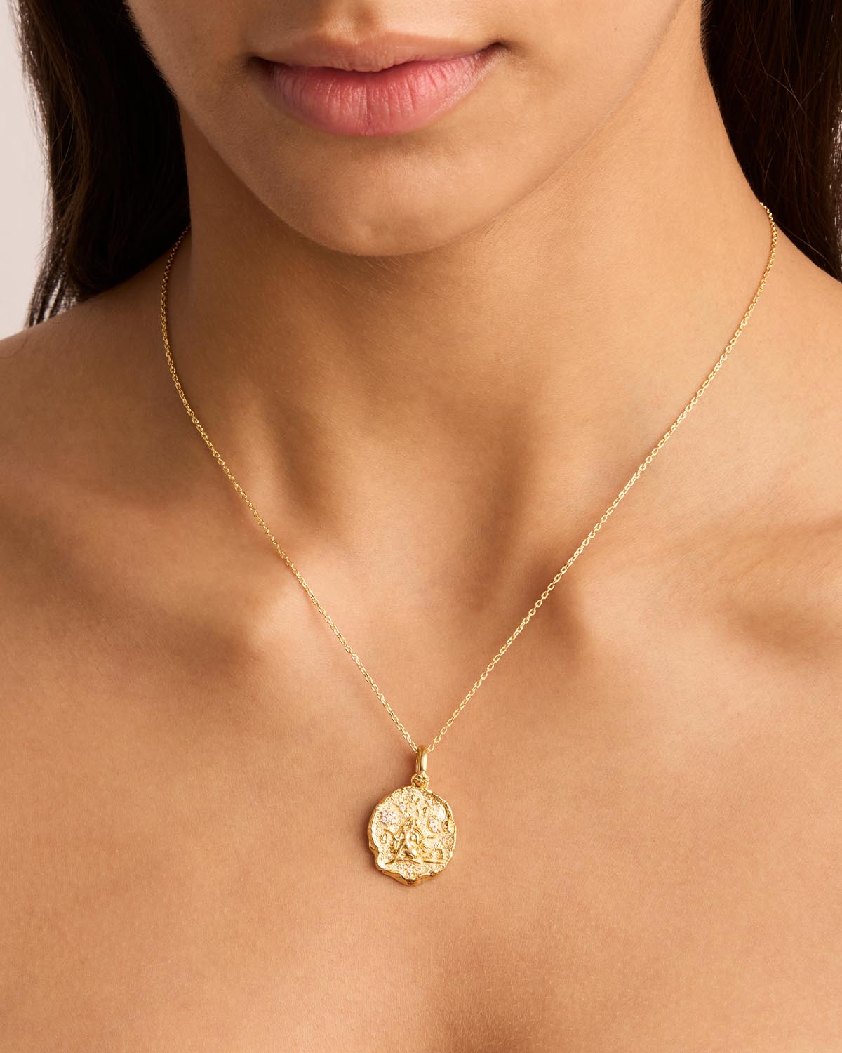 Embrace the diplomatic, sociable energy of Libra with our necklace featuring a battered, crystal-encrusted pendant on a signature chain. This delicate necklace showcases original hand-drawn artwork and is inscribed with the mantra "She is balanced, uplifting and fair", reflecting the unique spirit of those born in Libra season. Layer this piece with other meaningful necklaces and chokers for a personalized necklace stack.